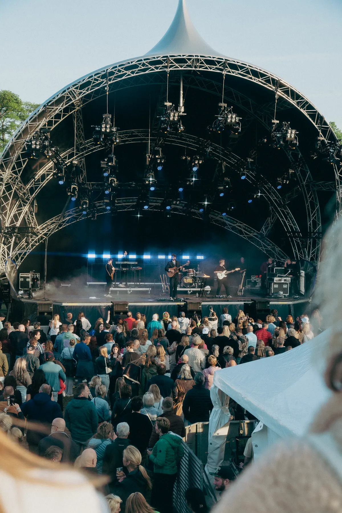 Het festivalterrein is gezellig maar toch ruim opgezet, met verschillende foodtrucks, meer dan genoeg tafeltjes en stoeltjes en als blikvanger het hoofdpodium met prachtige lichtinstallatie. Aan de zijkant staan al een paar kleine bands te spelen terwijl de vroege festivalbezoekers genieten van hun avondeten. De sfeer is er gemoedelijk, met mensen van alle leeftijden. De zon schijnt en de temperatuur is ideaal voor een festival.