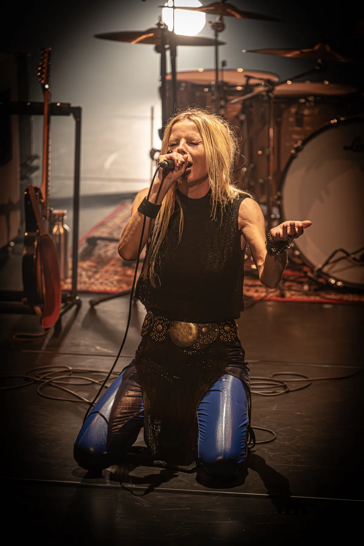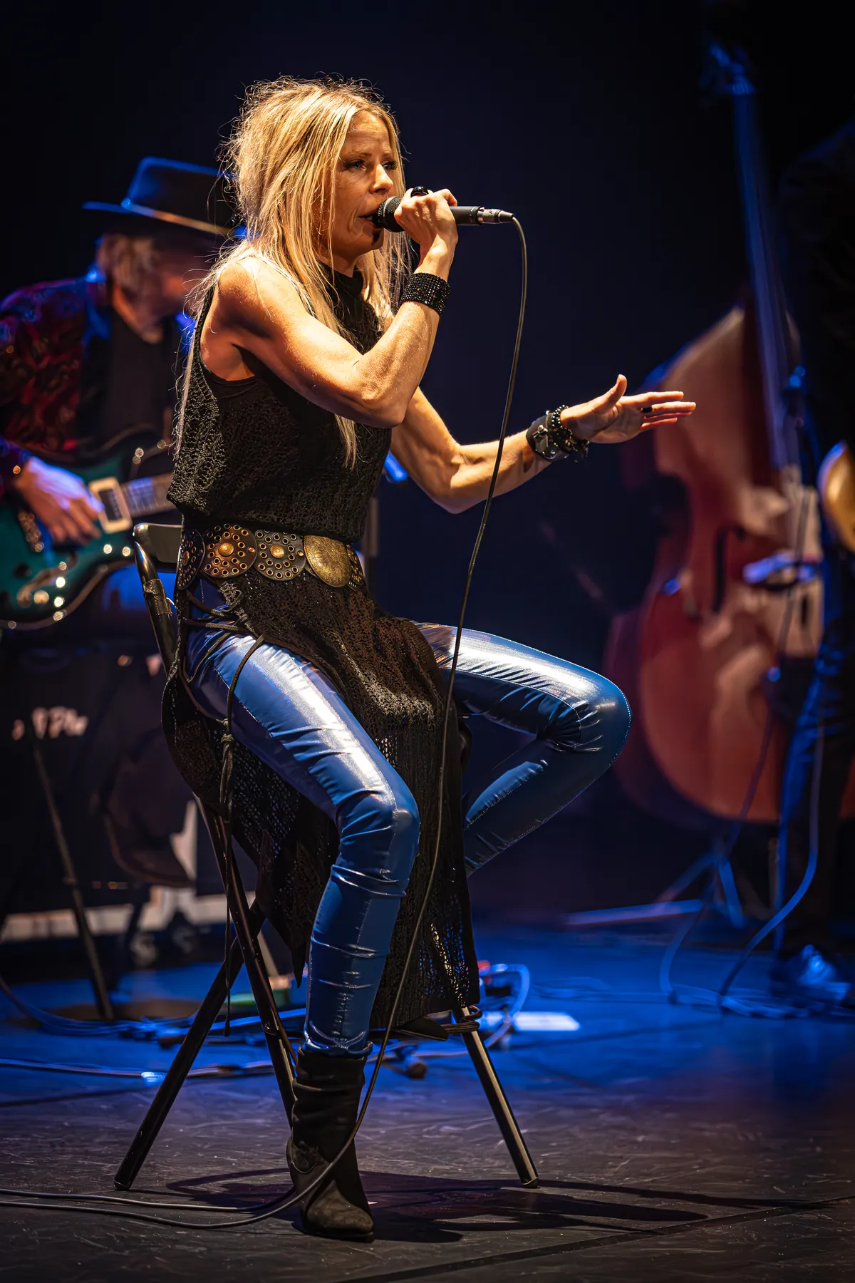 Na een korte break gaat de show verder zoals voor de pauze, met een fijne afwisseling van stevige bluessongs en gevoelige ballads – waarbij AJ soms even een kruk pakt voor ‘een rustmomentje’, want dat is tegenwoordig nodig, legt ze uit. “Maar hee, ik sta hier wél, hè?” Applaus volgt. Tussendoor vertelt ze kort iets over hoe de nieuwe nummers tot stand zijn gekomen en welk gevoel ze daarbij heeft op het moment dat ze de songs schrijft. Daarin is ze overigens opvallend open, noemt alles gewoon bij de naam en maakt de dingen niet mooier dan ze zijn. Recht voor zijn raap, zonder dat het ergens provocerend of juist zielig overkomt.