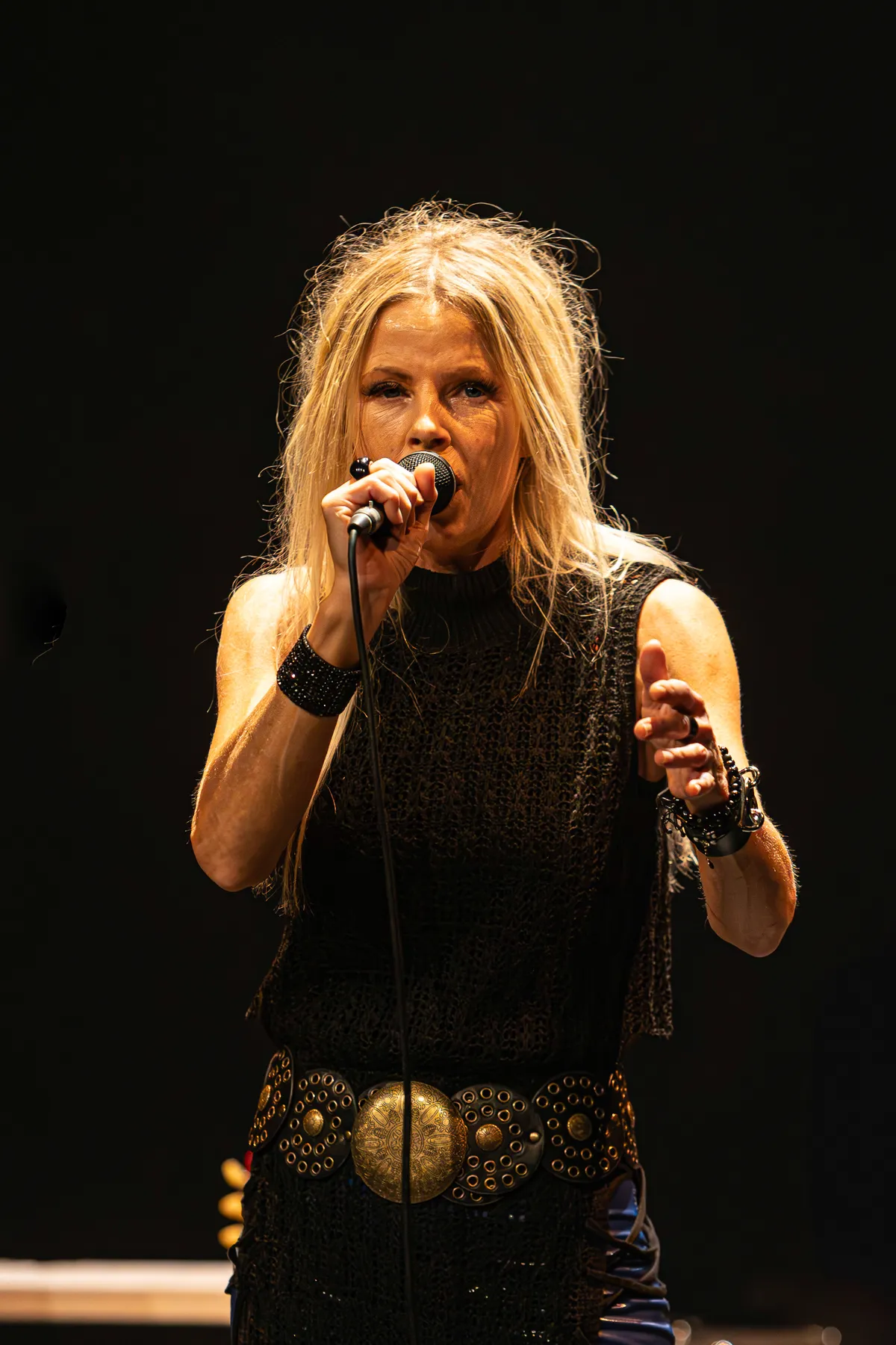 Wie zich heeft ingesteld op een avond vol ellende, komt bedrogen uit. Het eerste dat je als publiek te zien en te horen krijgt, is een prachtig uitgelichte AJ die a capella het eerste couplet zingt van de klassieker Feelin’ Good, waarna de band inzet en een krachtige eigen opener speelt. De boodschap is duidelijk: de zangeres voelt zich goed en is er weer. Het volgende nummer op de setlist gaat over de ziekte die ze achter zich heeft gelaten: de Killer King, tevens de titeltrack van haar laatste album. De band zet daarbij een volle, rijke sound neer, inclusief een heel arsenaal aan backing vocals die je wel hoort, maar niet ziet. Na een wat warrige afkondiging (‘Ja sorry, ik ben af en toe nog een beetje de draad kwijt’) zet de band Never Gonna Stop in, met daarin een belangrijke rol voor de onvervalste hammondsound van toetsenist Matt Daniël. Hij blijkt in Hoofddorp te zijn opgegroeid en speelt dus een soort thuiswedstrijd, met duidelijk fans in de zaal.