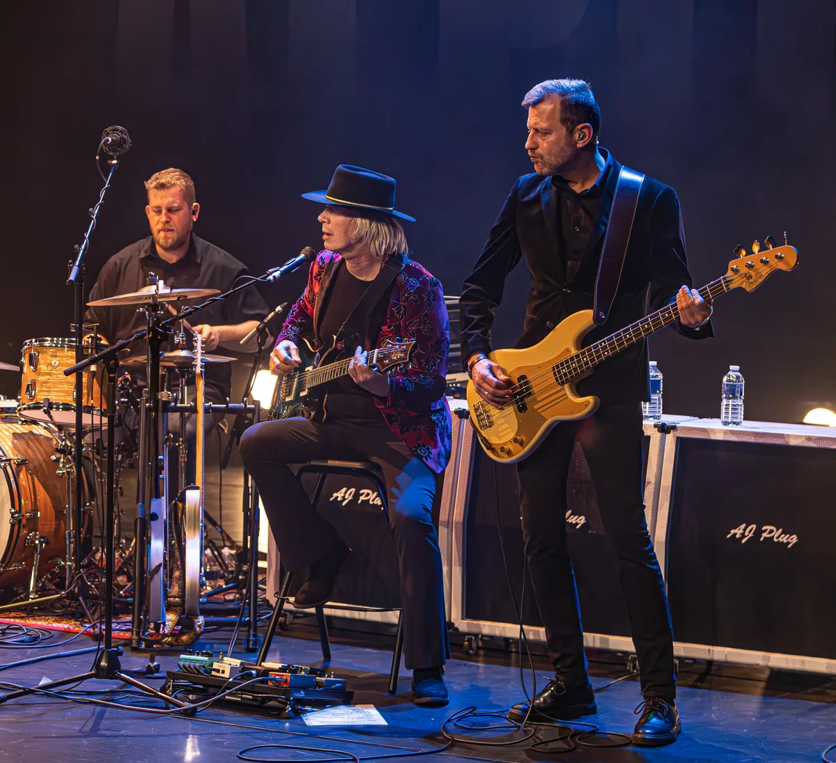 Die zaal is met zo’n zestig mensen overigens verre van uitverkocht. “Ach ja, ik hoorde net van een mevrouw van het theater dat Danny Vera hier ook is begonnen met maar dertig bezoekers”, relativeert AJ na afloop. “Kijk, voor theaterpubliek ben ik nieuw, niet veel mensen weten wie AJ Plug is. Maar het publiek dát er zit (voornamelijk 40+, red.), vindt het fantastisch!” Inderdaad wordt tijdens de show flink meegebounced in de stoelen en geeft het publiek meerdere malen spontane ‘open doekjes’. Bijvoorbeeld na de meeslepende solo die gitarist Sebas Fledderman eruit gooit tijdens het nummer ‘River blue’. “Dit nummer had ik al eerder geschreven en in een soort akoestische versie opgenomen op mijn album Barefoot”, vertelt AJ bij de aankondiging. “Maar nu had de tekst ineens een heel andere betekenis voor me gekregen. Vandaar dat het in een heftigere versie ook op Killer King is gekomen.”