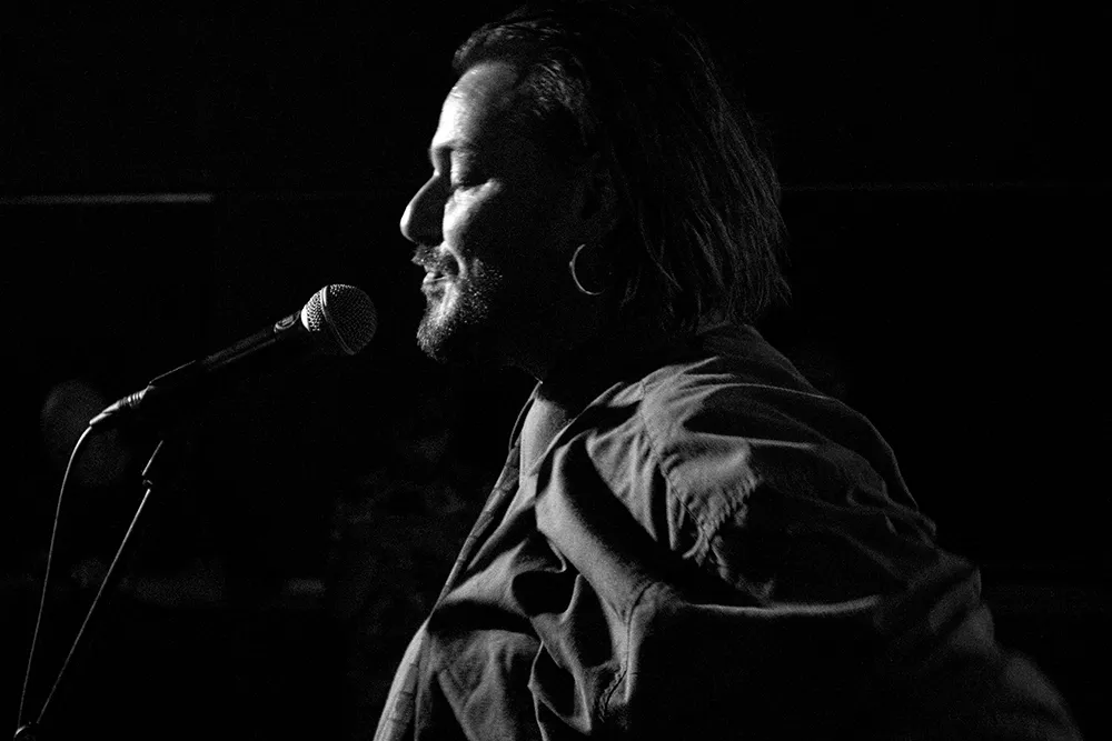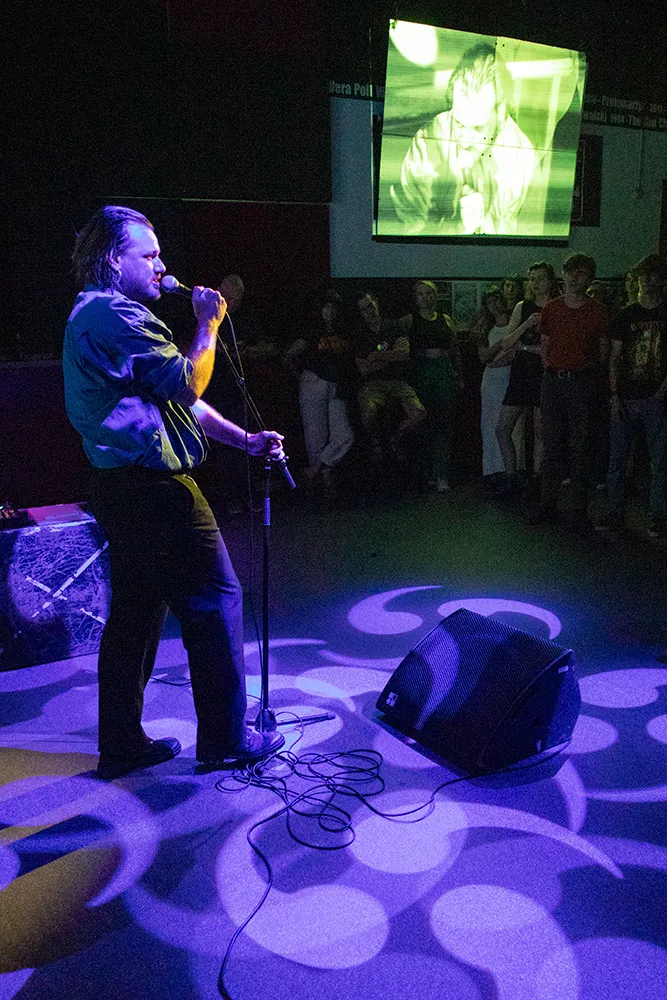 De setup van de avond belooft al geen standaard bandjes-avond. We zien bij binnenkomst dat het voorprogramma niet op het podium zal staan, maar ervoor. In de zaal staat een microfoon met op een kist wat papierwerk en een kleine soundboard. Op het podium zelf is alvast geen snaarinstrument meer te bekennen: we zien drums en twee desks.