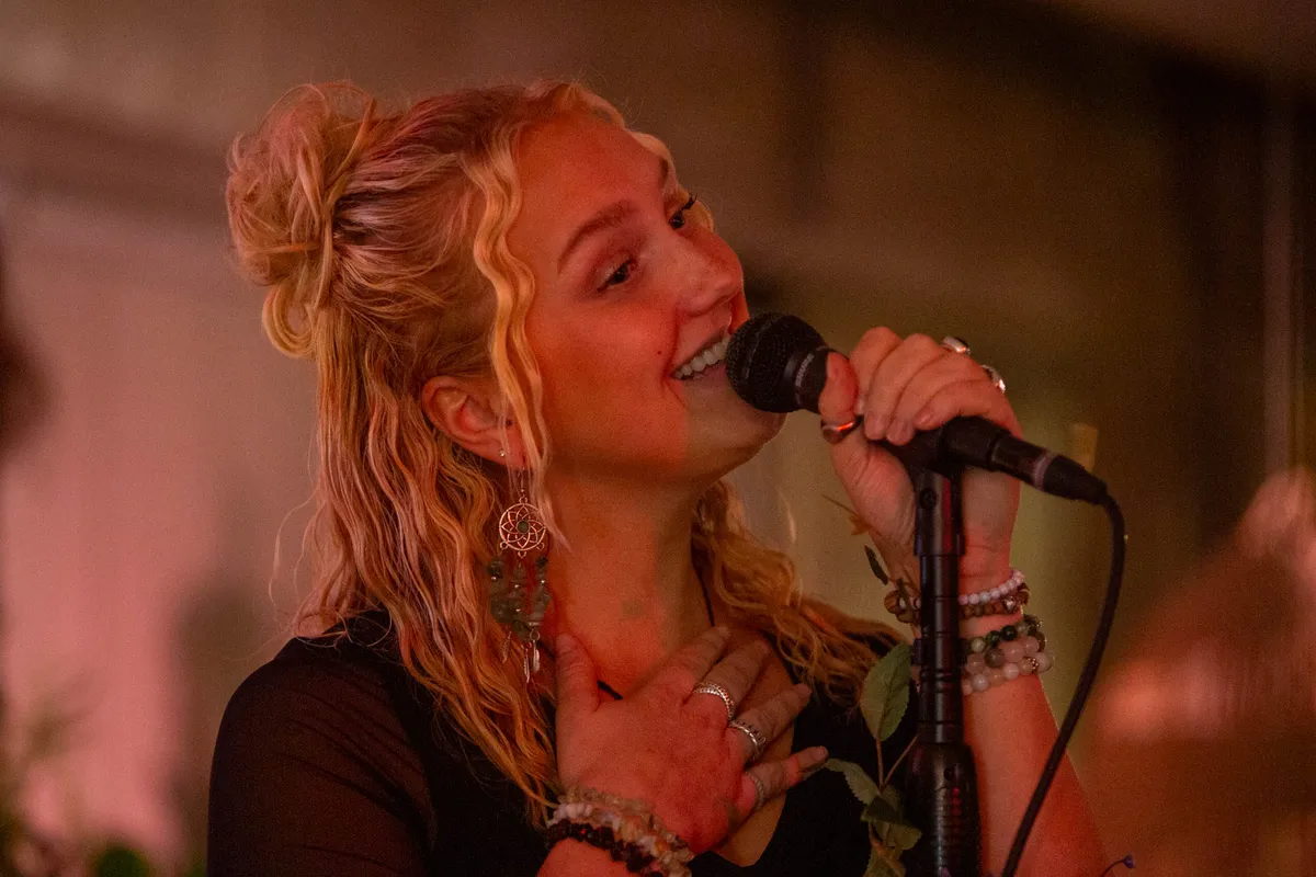 Op deze locatie blijft het niet bij dat ene optreden, want ook XXJULIA. Ze zingt, rapt en produceert alternatieve pop-soul met een scherp randje. XXJULÍA is zoals ze het eigenlijk zelf zegt een eebel met een groot hart en lijkt wel de liefde voor foute levenskeuzes te hebben. ,,Met een vlinder in mijn vuist vertel ik waar het op staat. Dansend op de rand van alternatieve soul gebruik ik mijn muziek als magazine, waarin ik mensen die me irriteren op de voorpagina plaats. Laat je dus niet misleiden door mijn warme stem want eens je tegen mijn schenen schopt zal je het geweten hebben”, zegt ze op haar eigen website.