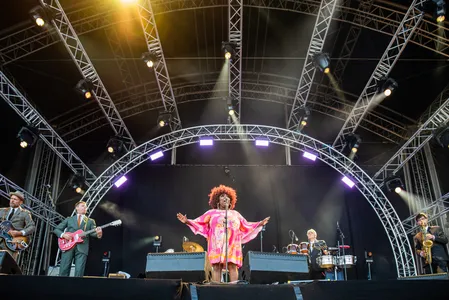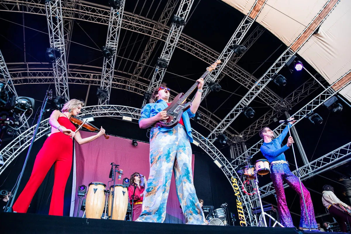 Op het Umoja-podium staat Son Mieux te popelen om de bühne te betreden. De formatie van de band uit Den Haag is sinds de start een aantal keer veranderd. Inmiddels weet deze zevenkoppige groep indruk te maken. Niet alleen met hun pop-sound en aanstekelijke nummers, ook met de kleurrijke outfits die zij tijdens hun shows dragen veroveren ze de muziekscene. Vanaf moment één is de toon gezet en nemen ze het publiek in een uur tijd mee in hun muzikale reis waarbij het nummer Multicolor het hardst wordt meegezongen.