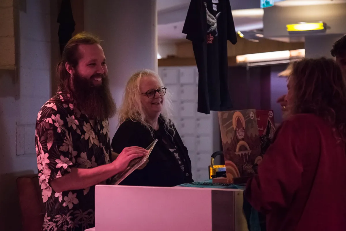 Op het eerste gezicht lijkt op Ramblin’ Roots 2021 alles bij het oude gebleven, nadat het festival vorig jaar vanwege de coronapandemie niet door kon gaan. Er is de vertrouwde mix van folk, country, blues, soul en rootsy pop, verspreid over vier zalen van TivoliVredenburg. De sfeer is relaxed. Roots-coryfee Hubert van Hoof verzorgt aankondigingen. Het plein op de zesde etage van het muziekpaleis herbergt weer kraampjes met hotdogs, burgers en empanada’s, terwijl een dj een geluidsdecor van bekende en obscure vintage-Americana verzorgt. Het binnenplein op de vijfde etage is ingericht voor de liefhebbers van vinyl en cd’s, leren riemen, laarzen, cowboyhoeden. En het publiek bestaat weer voor het merendeel uit vijftigers en zestigers, aangevuld met wat jongere generaties concertgangers.