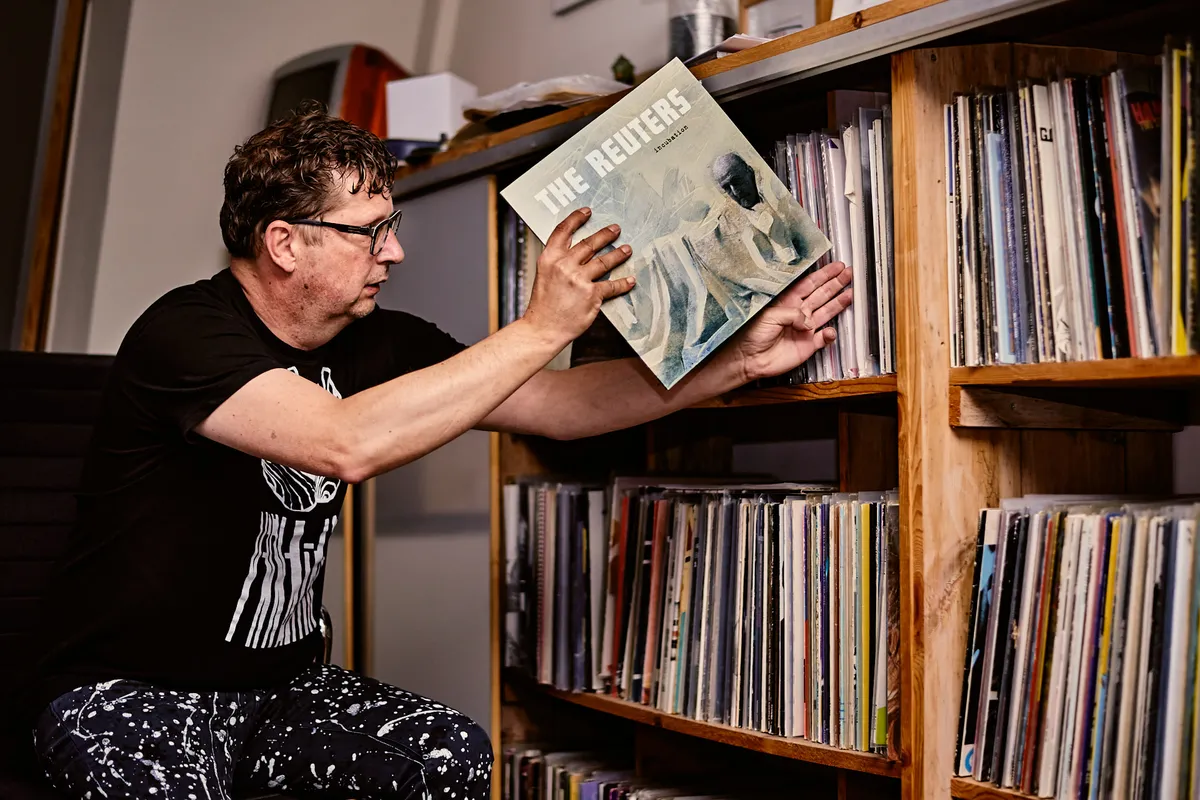 Terug naar beneden, terug naar het begin. In de woonkamer, waar de wanden behangen zijn met diverse kunstwerken, vertelt Johan Buurke hoe hij als Achterhoekse tiener word gegrepen door eerst de glamrock en daarna de Britse punk en new wave van bands als Joy Division en The Stranglers. Na studies aan de sociale academie en de kunstacademie werkt hij als grafisch ontwerper bij een reclamebureau en als groepsleider in de geestelijke gezondheidszorg. Maar ondertussen blijft hij met muziek bezig. “Op een bepaald moment, eind jaren 90, begon ik me steeds meer te storen aan het eenzijdige muziekaanbod,” vertelt hij. “Radio, platenlabels, muziekbladen – alles begon steeds meer op elkaar te lijken. Het experiment was weg. Ik kende wat mensen bij onafhankelijke labels en ik zag wat ze deden en dacht opeens: dat kan ik ook. Of eigenlijk, als ik diep in mijn hart kijk: dat kan ik iets beter.”