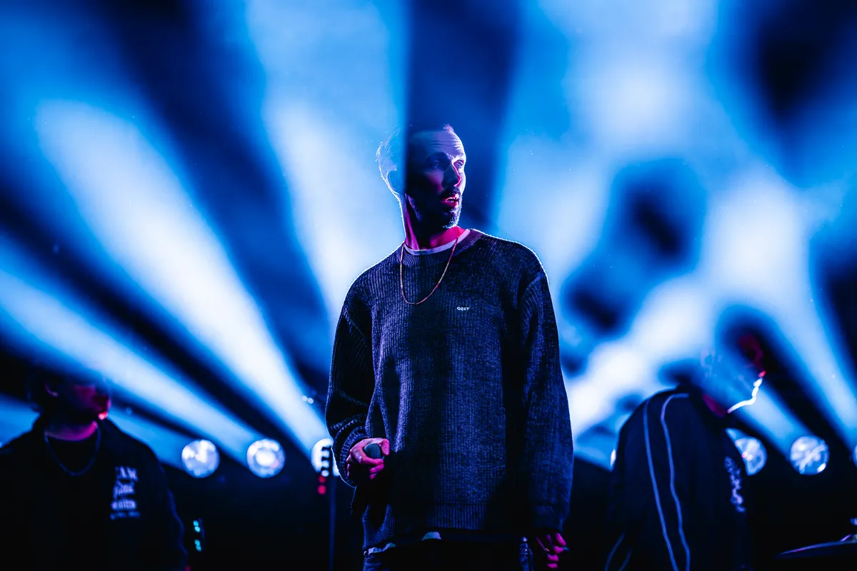 Verstaanbaarheid is alleen niet zijn grootste vriend vanavond. Er zijn stukken waarin je als leek geen woord kunt volgen, maar gelukkig heeft dit publiek de tekst niet nodig om mee te doen. Ze kennen de lines ze zingen terug. Alsof ze de backing track zijn.