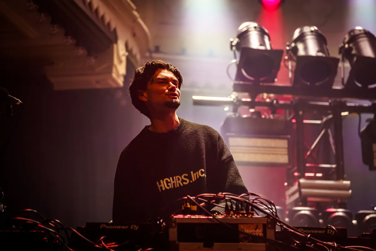 De 22-jarige DEF, is begin deze maand uitgeroepen tot Beste Nieuwkomer bij 3FM, komt het podium op met een glas rode wijn in zijn hand. Alsof hij even komt checken hoe het met ons gaat, en pas daarna besluit om een set te spelen. Die houding past bij wat volgt: laidback, maar met genoeg intentie om de zaal in beweging te krijgen.