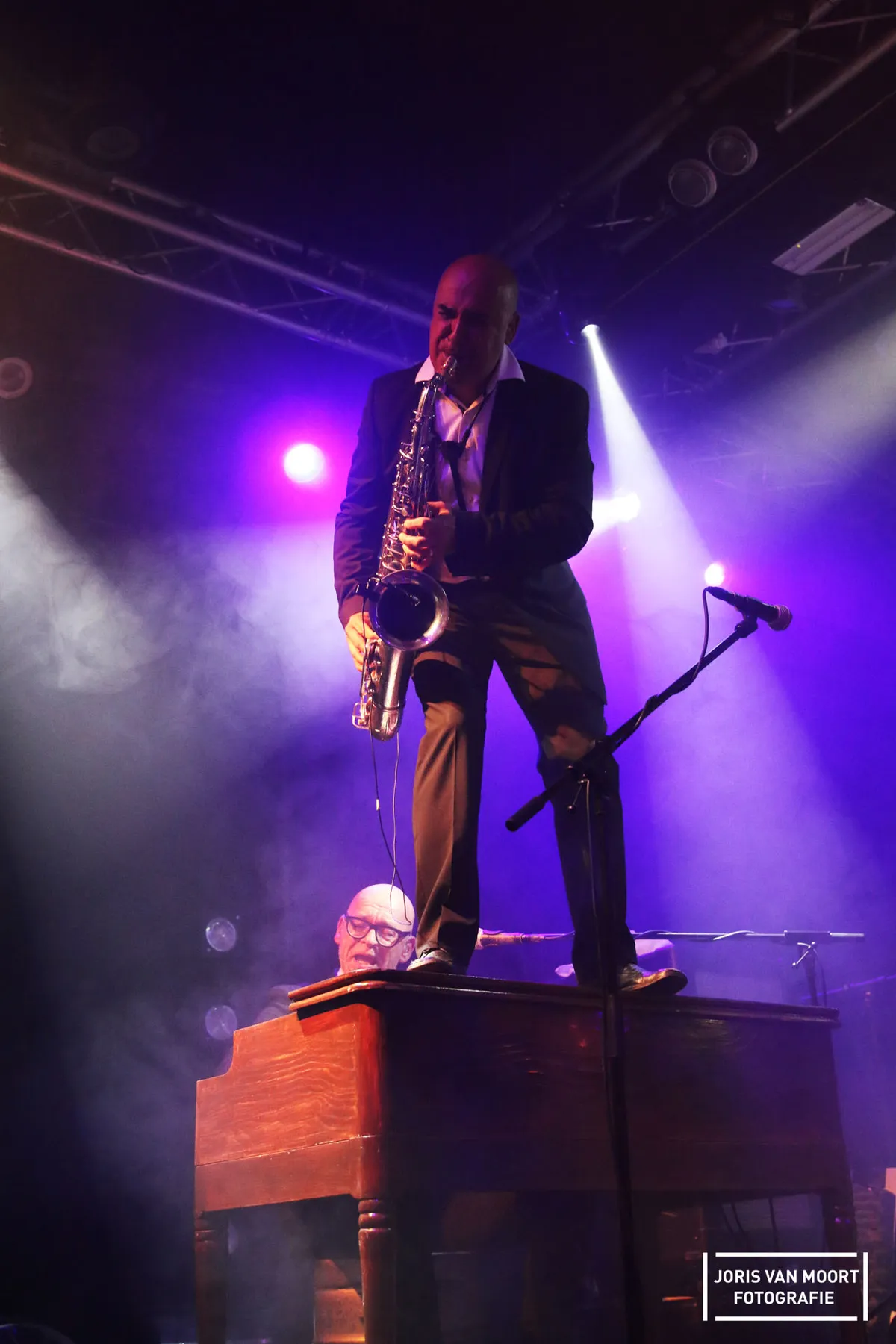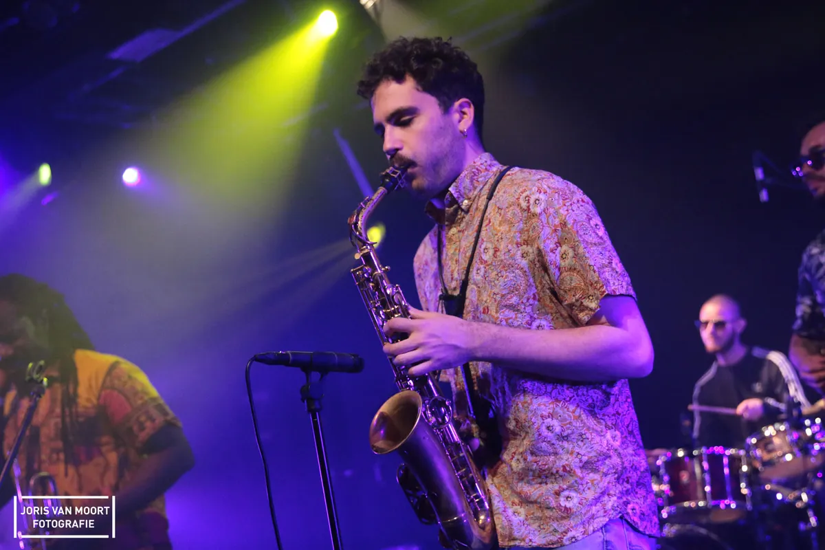 Later is de beurt aan Smelly Kitchen in de zaal. Met een reeks aan eigen werk speelt deze immense band met blazerssectie, ritme, percussie en meer. Het past maar net op het podium, al deert niemand dat iets. Halverwege de set besluit de saxofonist op het orgel te klimmen en speelt daar zijn solo, alsof er niks aan de hand is.