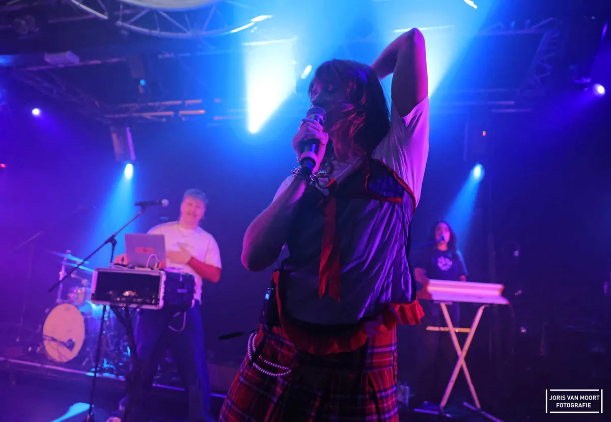 Kuzko trapt hun set af met een stevige boodschap: “Voor iedereen die je niet laat zijn wie je bent: fuck you!” Hun springerige elektropop zit vol girlpower en zelfliefde. ‘You Don’t Like Me’- That’s Your Problem zet de toon, gevolgd door ‘Ecstasy’ en het spetterende ‘Meet Me at the Arcade.’ Een spontane uitverkiezing uit het publiek levert Siem op als gast bij het nummer ‘ireallylikeboys:’ zijn kapsel lijkt het meest op een matje, vindt zangeres Danique. En daar valt ze op: op matjes dus. Het optreden is een mix van muziek en theater, met als afsluiter het duet ‘Rich & Famous.’