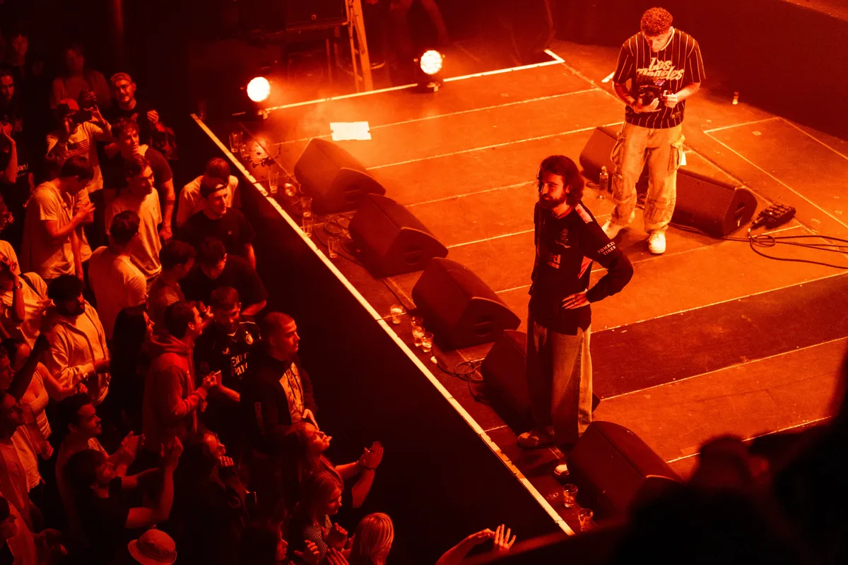 Het is een mijlpaal concert volgens Ares. Hij is nu namelijk al dertien jaar bezig met muziek maken en dit is de laatste keer dat hij z’n oude repertoire doet. De eerste melodieën van nummer Hart is Koud klinken, en daarmee is de toon gezet. Een echte Ares-klassieker, en een geliefd nummer onder fans met zo’n 1.3 miljoen streams. Gretig wordt er gerapt en hoofden bewegen op de beat. Hij kondigt een volgend nummer aan en beveelt het publiek mee te doen: ,,Deze moeten jullie doen”, hij leidt het in door te zeggen dat democratie niet bestaat, waarna een boze beat klinkt. Keihard rappen alle mannen in de zaal de tekst, de sfeer is broeierig en ook nu gaan alle handen weer de lucht in om gretig de teksten te ondersteunen.