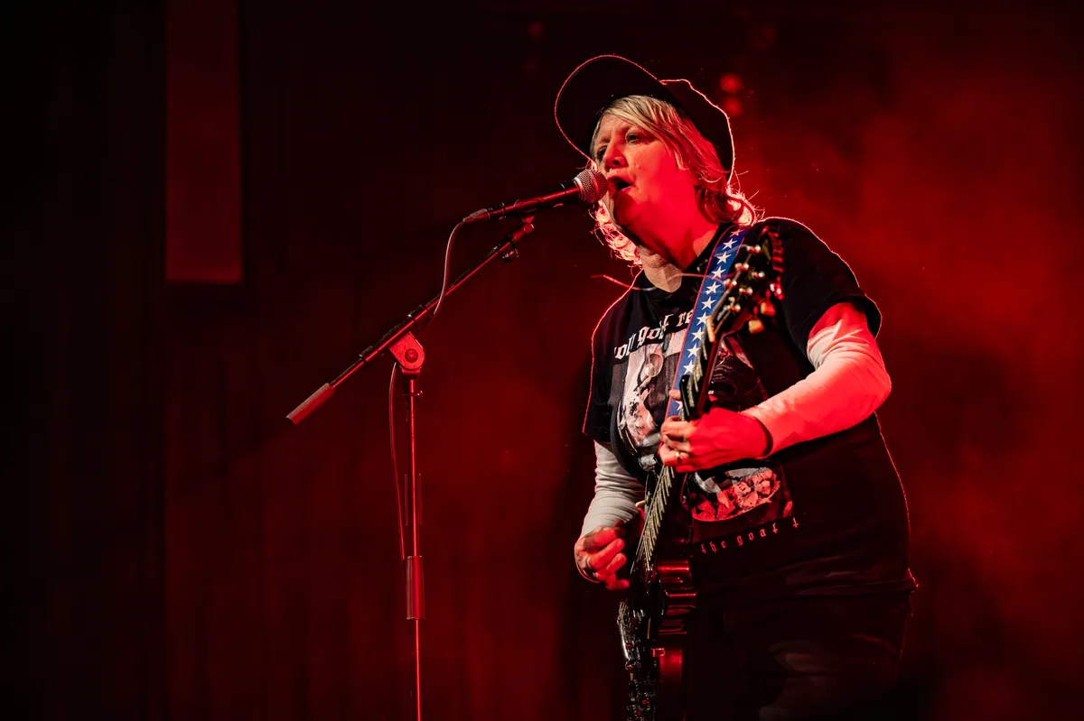 Ondanks dat het een stoere vrouw is, dreigt de set soms een beetje gezapig te worden. Na een kwartiertje wordt haar akoestische gitaar door een elektrische vervangen, waardoor haar karakter wat meer doorschemert en de woorden “one day the angel became a punk” betekenis krijgen. Voordat ze ‘Angel’ speelt, vertelt ze hoe ze als twaalfjarige haar haar kort knipte met een heggenschaar en vanaf toen punk is geworden. Tegen het einde zegt ze nog even anti-Trump gas te willen geven en een nummer van zijn grootste vijand te willen spelen, ofwel ‘Dancing In the Dark’ van Springsteen. Haar humor mag nog één keer blijken voordat ze van het podium afgaat: ze grapt dat ze een horloge heeft, maar het niet af kan lezen. Als ze zich realiseert dat ze zeven minuten over tijd is, neemt ze afscheid en krijgt het publiek nog een nuchtere “doei”.