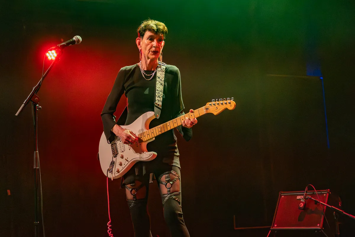 Als de band start met iconische nummers zoals ‘Come Again’ en ‘Love Song’, kun je meteen niet om de kenmerkende groove en dansbaarheid heen. De inmiddels 68-jarige Woods staat er sterk bij en schreeuwt nog even hard over de muziek heen. Hoewel Woods de zogenaamde frontwoman is, is bassist Estella Adeyer misschien wel de ster van de show. De meeste energie komt van haar kant af door haar enorme stage presence, de manier waarop ze de uptempo nummers met gemak bijhoudt en daarbij allesbehalve stil kan blijven staan. Bij ‘Armagh’, een nummer vernoemd naar een vrouwengevangenis in Noord-Ierland waar een enorm protest plaatsvond in de jaren '80, stelen de drums de show en worden de woorden “We don’t torture” flink meegezongen. Tussendoor worden ook drie nieuwe nummers ten gehore gebracht: ‘Let It Go’, ‘Cross the Bridge' en ‘In the Wrong Body’. Voor een punkband ontbreekt er wel lef en agressie, zelfs met een pittige frontwoman.