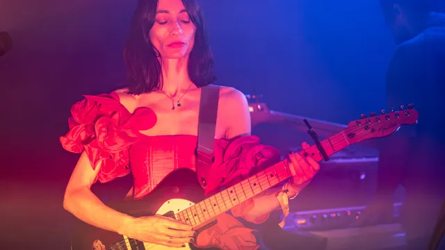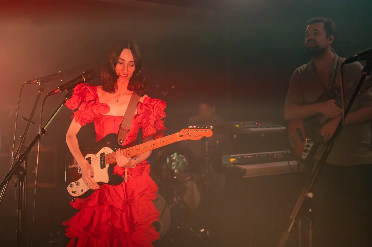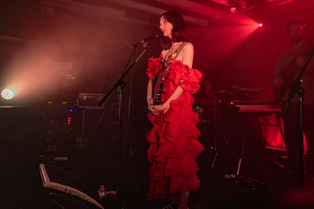 Geduld is wel vaker een schone zaak, zo ook vanavond: de deuren van de kleine zaal openen pas om kwart over acht, het officiële startuur. Enfin, niet veel later betreedt voorprogramma Pina Palau het podium, dat eerlijk gezegd nauwelijks hoger is dan de douchebak van je oma. De Zwitserse singer-songwriter, normaal gesproken vergezeld door haar band, staat vanavond alleen op het podium. Waarom? Er was nog maar één plaatsje over in de tourbus. Resultaat? Een halfuur intieme gitaarliedjes, ergens tussen de schurende teksten van Courtney Barnett en de melancholie van Phoebe Bridgers in. Palau's songs zijn vaak autobiografisch, zoals te horen op 'Modern Home', een nummer dat haar potentieel mooi weerspiegelt. Ze deelt met de volle zaal dat ze King Hannah al dertien keer heeft gezien. "Iedere keer was het fantastisch", zegt ze, wat de verwachting voor vanavond alleen maar verder doet rijzen.