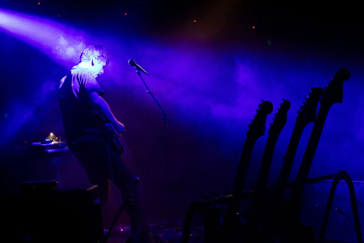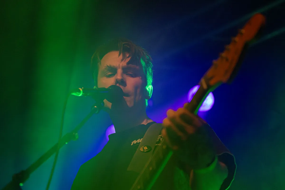 North Star Runner is het nieuwe alter ego van Bo Menning, die we kennen van Aestrid. Daar was de tank helemaal leeg, de band is begraven, maar Menning heeft zichzelf hervonden. Dat ging niet vanzelf. “Ik heb heel hard geprobeerd te stoppen met muziek maken, maar dat is niet gelukt,” zegt hij halverwege deze avond. We mogen ons gelukkig prijzen dat dit voornemen is vastgelopen, want nu presenteert Menning als North Star Runner het prachtige album The Dennen.
