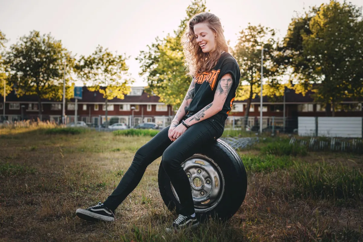 ‘Als vrouw in de muziekwereld moet ik natuurlijk wel op de foto met maandverband: power to women! Ik vind het ook grappig dat mannen vaak een beetje ongemakkelijk worden als ze maandverband zien en soms ook van vrouwen die een instrument spelen trouwens.’