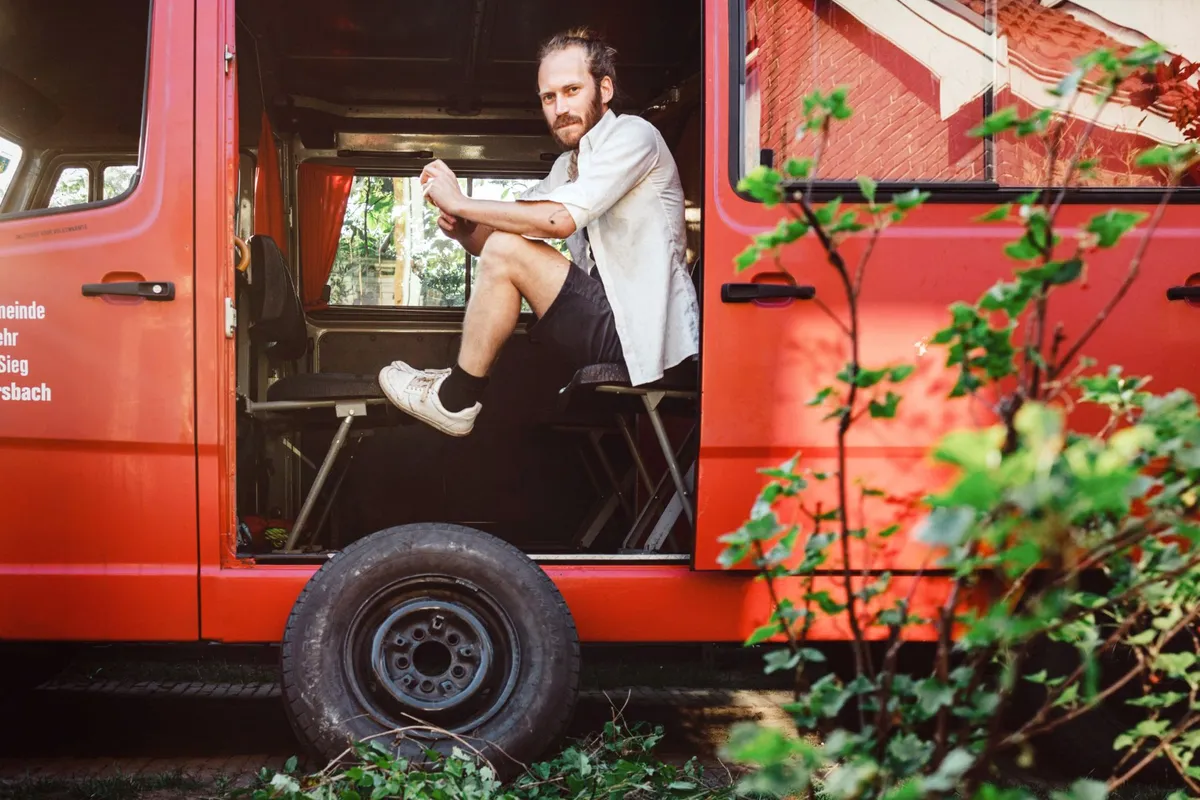 ‘Deze oude brandweerbus gebruik ik alweer bijna 10 jaar als bandbus. Ik heb er veel aan gesleuteld en veel meegemaakt. De reserveband is een stuk of zes keer gebruikt. Een keer werd hij lek gestoken met opnames van Roosbeef in Antwerpen en daarna ben ik te lang met reserveband rondgereden waardoor deze met ‘FautHaut’ op een Poprondeshow in Maastricht terug naar Utrecht een ei werd en we met 60 km/u over de snelweg moesten rijden.’
