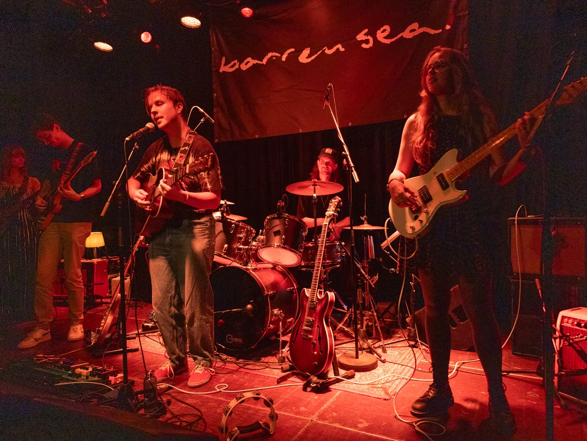 Dan de hoofdact zelf heeft de EP The War On Cars al stiekem integraal laten horen tijdens hun optreden in de 3voor12 Noord-Holland Vloedgolf editie van mei in Alternative FM. Dat Barren Sea er zin in heeft tijdens deze avond, blijkt ook wel uit het bewegend beeld bij het nummer The Horse van muziekliefhebber Niek Wolters die met zijn mobiele telefoon vaak opnames maakt. Barren Sea combineert elementen van grunge, folk en shoegaze. Je kunt denken aan mistige herfstvelden, warme regenbuien en de stille gratie van aartsengelen. The War on Cars is een verzameling nummers die het helingsproces na een levensbedreigend auto-ongeluk volgt, en de gevoelens die daarbij loskomen: woede, verwarring, empathie en liefde. Het is dus de verwijzing naar het ongeval wat frontvouw Marie van der Zalm is overkomen in de zomer van 2023.