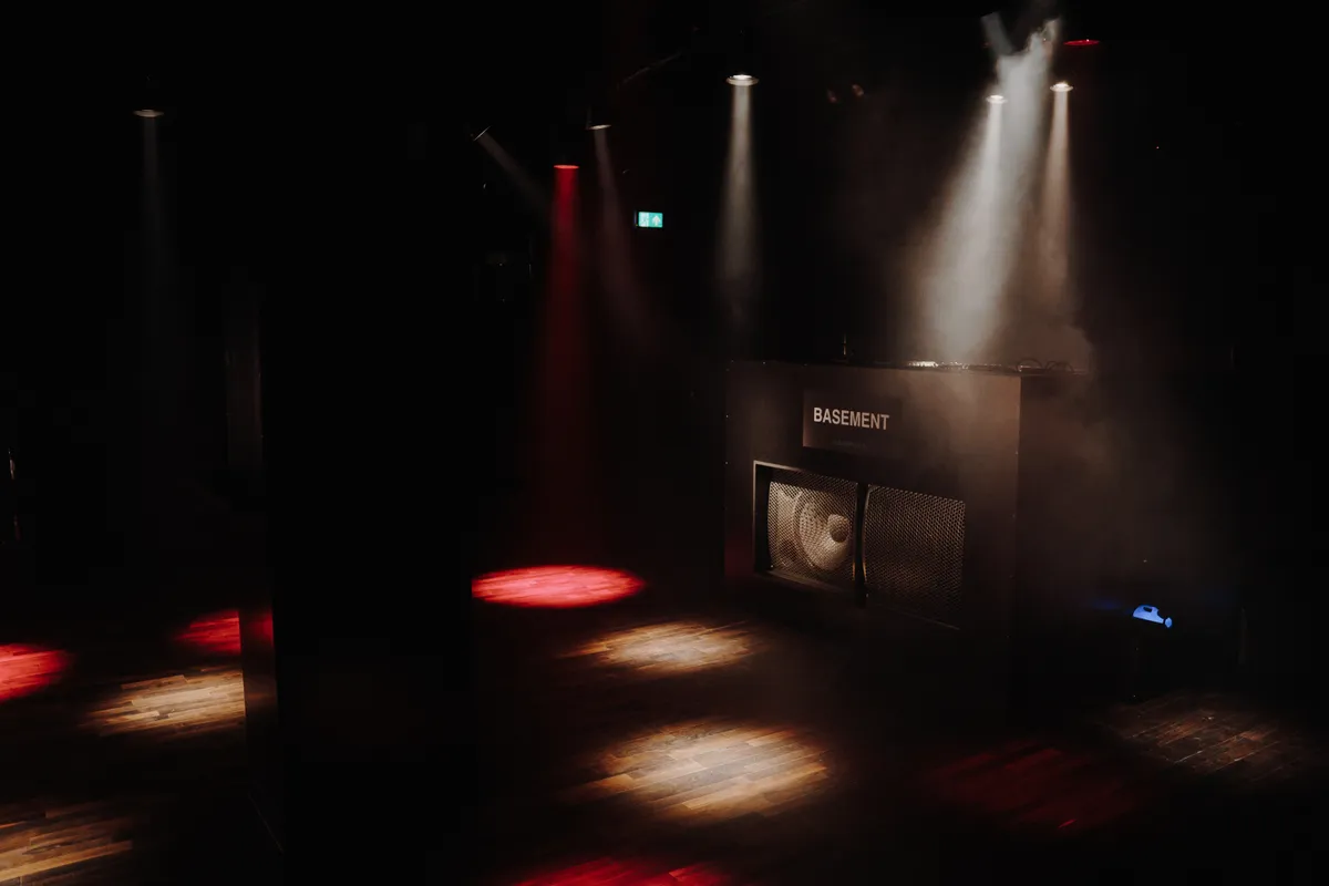 Basement ligt letterlijk onder het Leidseplein. ,,Je gaat naar beneden en laat de rest van de stad achter je. Wat je ziet is wat je krijgt: intiem. Je gaat de trap af en je staat meteen in de nachtgelegenheid, geen voorcafé waar je eerst een biertje tapt. Eén ruimte, een nieuwe Function-One-installatie en een custom DJ-booth. Dat systeem komt het beste tot zijn recht in een kleine, zweterige ruimte, en dat is precies wat ik zelf het liefste heb”, zegt Jimi.