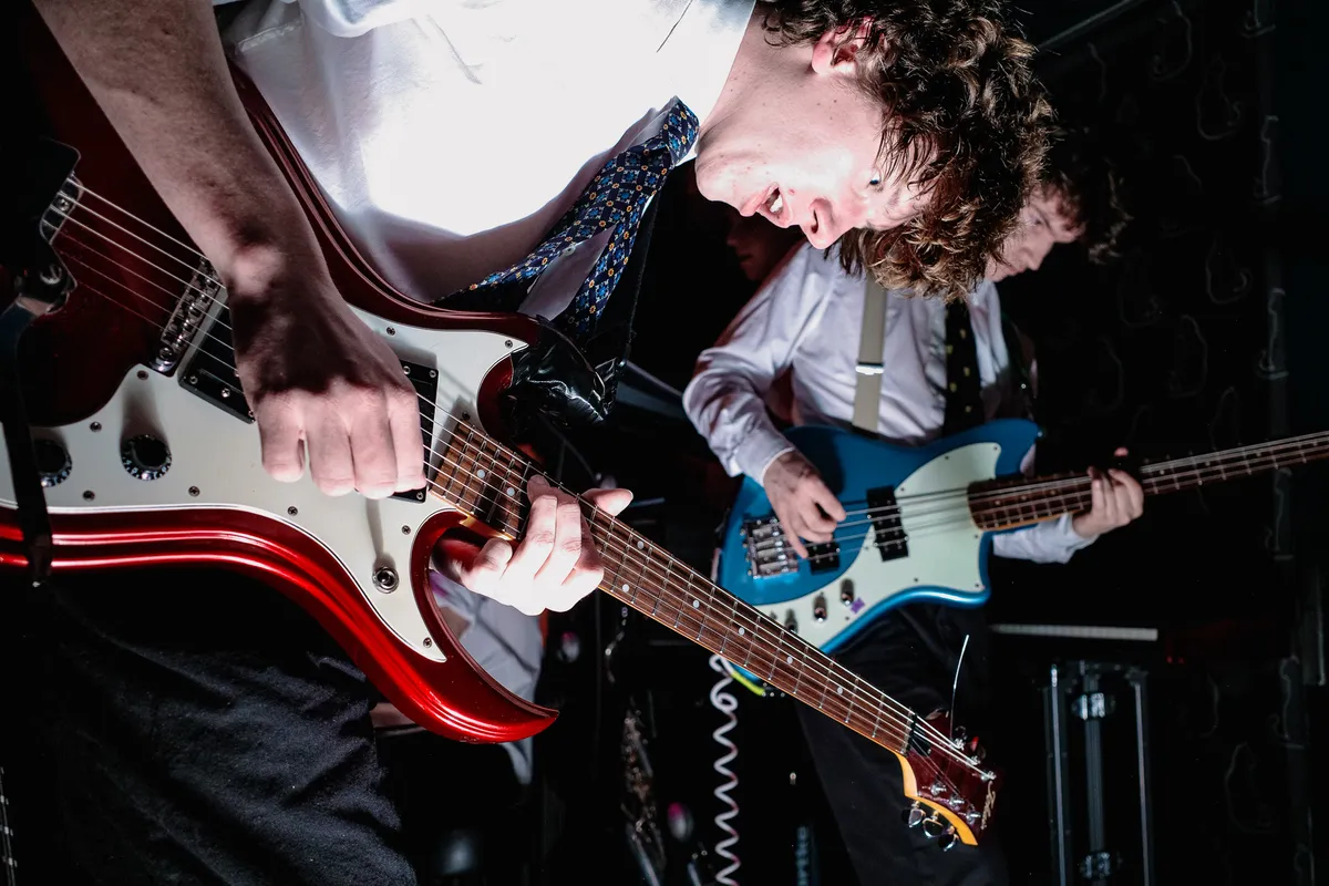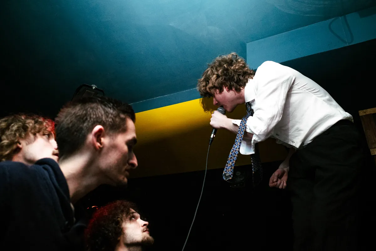 Richting het einde van de set vormt zich voorin de zaal een moshpit gehuld in Grote Geelstaart merch. De band zelf komt geen haar te kort om mee te zwieren en gaat op het podium, op de vloer en zelfs op de bar, even hard als de menigte. Je zult je dan ook verbazen hoe ongekend veel geluid er precies uit een band met zulke nette schoenen kan komen.