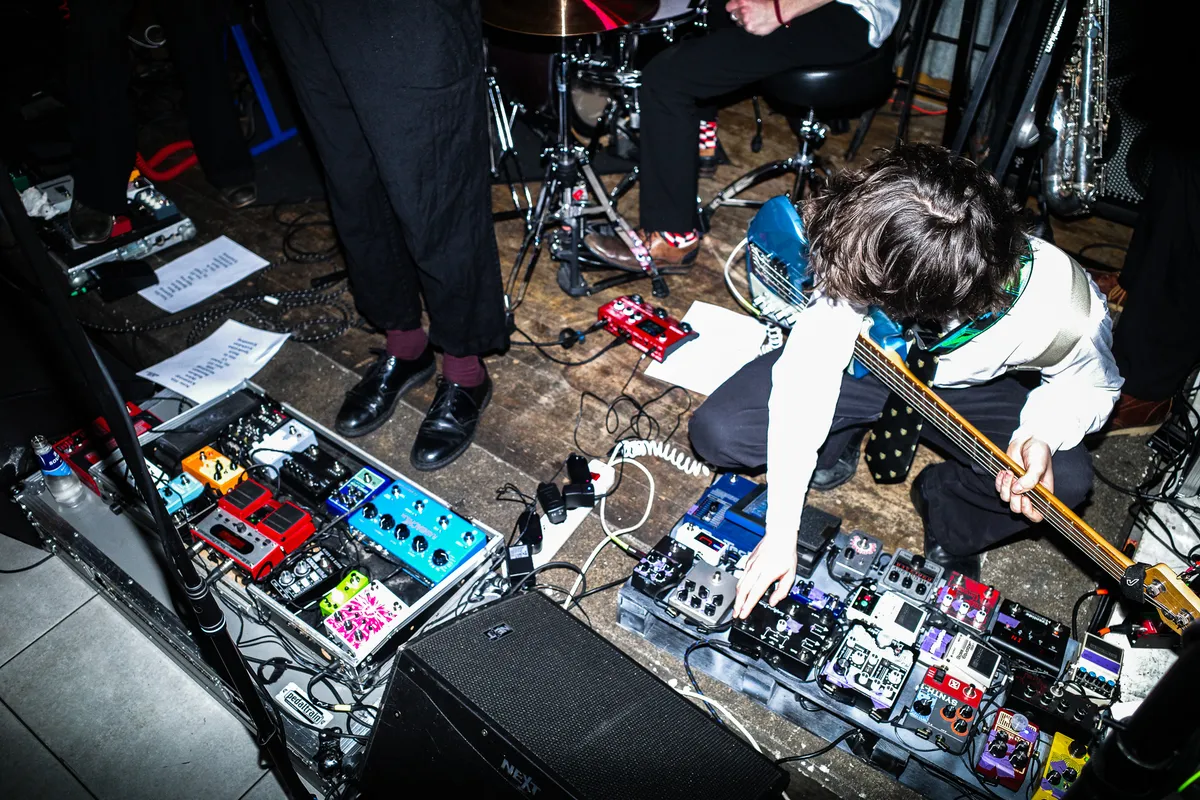 Het Rotterdamse vijftal Poodle stond al twee keer in Tilburg geboekt, maar spelen vanavond eindelijk voor het eerst. Drie keer is scheepsrecht en de superdansbare en humoristische garagepop doet het goed. Zo doen we tijdens 'Shark' met z’n allen alsof we nog nat zijn van het strand en niet van het winterse weer. De knuffelbare band maakt uptempo garagepop vol verrassingen. ‘Labracadabrador’ begint met een groovy bas en kunnen we meteen daarna rekenen op schelle, meerstemmige zang en snerende gitaar. De stervormige tamboerijn wordt enthousiast afgewisseld met koebel en zelfs een scheidsrechtersfluitje is voor Poodle niet te gek. Eigenzinnige outfits, rinkelende oorbellen en ietwat gewaagde verzoekjes uit het publiek zorgen voor een gezellige chaos waar je wel bij móet lachen, Oe lah lah!