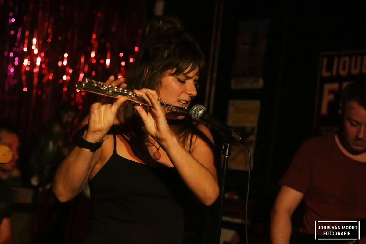 Terwijl de tafeltjes aan de kant worden geschoven, staat Nimbus Cart in de startblokken. Voor het eerst speelt deze band uit Gent in Nederland en Kaffee 't Hof mag met deze eer strijken. De samenstelling van deze bandleden is afkomstig van diverse acts als Blackfish en Spit Fox. Laatstgenoemde stond hier eerder al eens in 't Hof. De Gentenaren brengen lekkere 70's psychedelische rock en er moet vooral gedanst worden, aldus de zangeres. Ondanks de weinige naamsbekendheid van de band zit het muzikaal dik inorde. De rauwe zangstem, gecombineerd met puike gitaarrifs (met op het eind wat technische mankementen) is het een prima act op menig Belgische-bandavond.