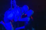 De bezoekers vormen een kring rond het podium en de lichten worden rood. Een man in leren outfit met zilveren schakelketting verdeeld een touw rondom het podium. Als het uiteinde van het touw bijna bereikt is weeft hij iemand uit het publiek zijn kant op. Een man in slechts een kimono, onderbroek en een grote oranje baard met stuk touw om zijn been stapt naar voren en wordt begeleidt dichterbij te komen.
