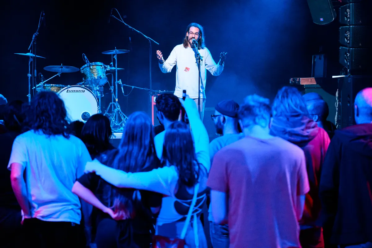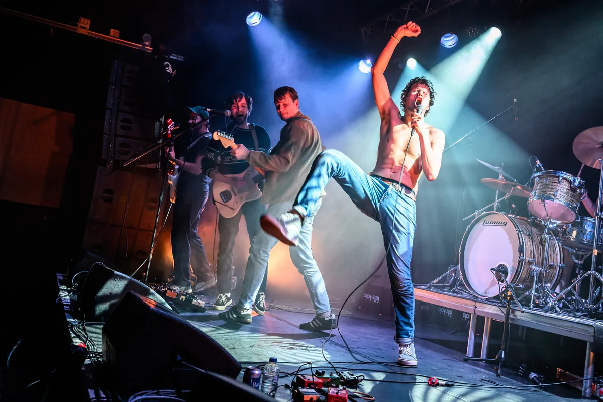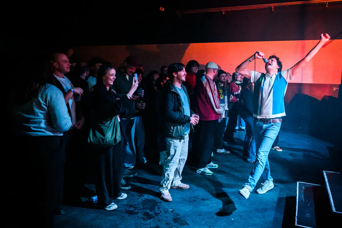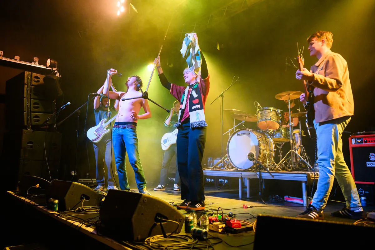 Afterpartees? Mede mogelijk gemaakt door Danny Panadero, tenminste, als dat de reden is waarom we 'Danny's Autopaleis' als opkomstlied horen. Voor de rest is het goed om te zien dat frontman Niek Nellen in zijn eentje altijd energie genoeg heeft om vier bands aan te sturen. Speaking of tien-jaar-geleden-vibes, als we Setlist.fm mogen geloven is het alweer negen (!) jaar geleden dat we de band uit Horst hier in Tilburg hebben zien spelen, een Record Store Day 2022 in Sounds daargelaten. In de tussentijd zijn er kinderen bijgekomen, is Nellen getrouwd en blijft de band gestaag muziek uitbrengen. Nellen vliegt als vanouds alle kanten op, koprollen, kopstoten met de tamboerijn en prijst alvast zijn microfoonstand aan.
