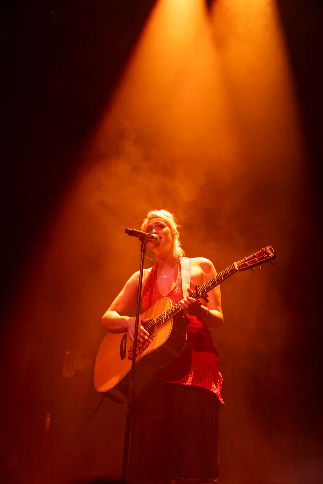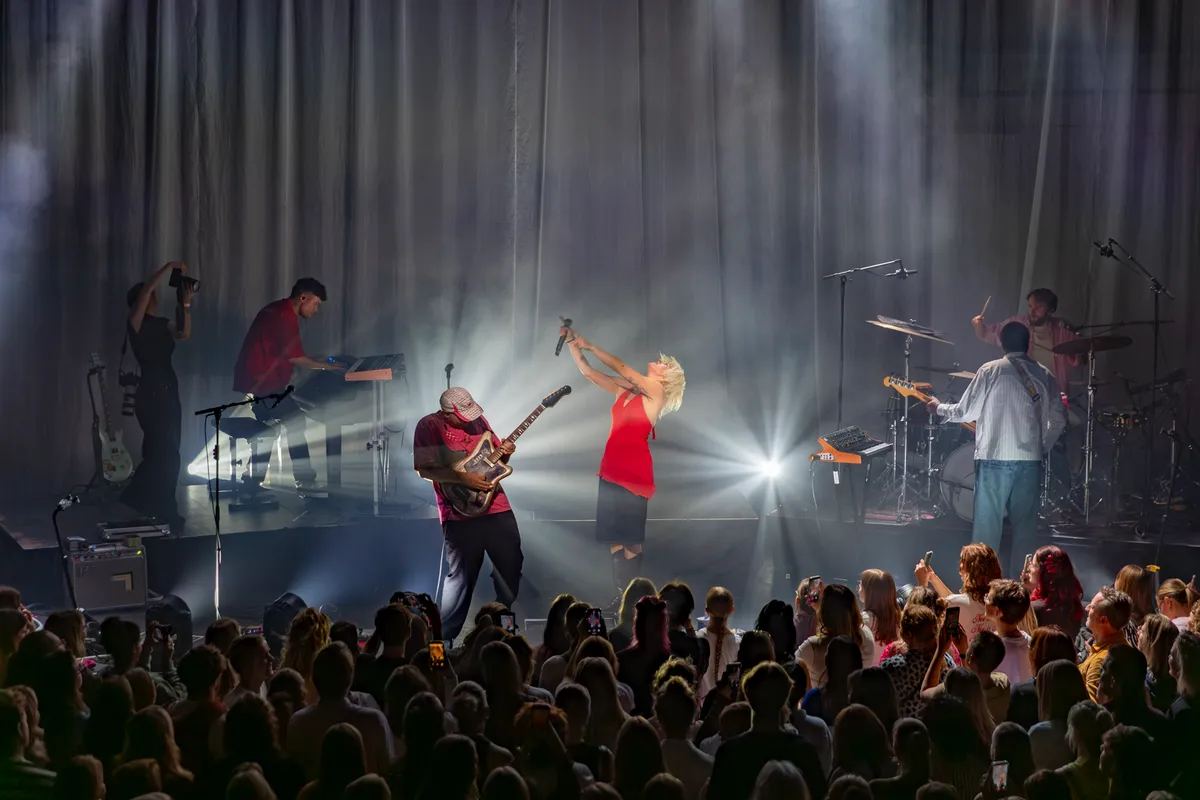Tussen de dansbare interludes door klinken intieme momenten: een liedje over dromen en durven groeien, waarbij ze de zaal zachtjes “vier vaker, lach veel, hou vast” laat herhalen. Eerst aarzelend, daarna vol overtuiging.