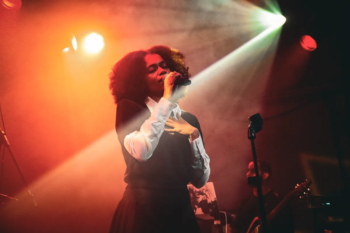 We zijn alweer bijna bij de laatste act aangekomen, maar eerst mag GINGE met haar bitterzoete stem en scherpe attitude de één-na-laatste heerlijke late night tunes verzorgen in de foyer van de Hall. Met r&b-pop en een hele hoop zelfvertrouwen als basis zingt ze met een soulvolle stem over een gebroken hart, afwijzing, zelfacceptatie en vervelende mannen. Haar optreden zit vol expressie en lekkere instrumentale riffs, en zo houdt ze het publiek dat na vier uur inmiddels wel wat minder energiek is, nog prima bij de les. Aan het einde van haar optreden ontstaat er ruimte voor wat gevoeliger repertoire dat hand in hand gaat met verrassend ruiger gitaarspel. GINGE toont zich sterk voor een publiek dat echt niet zo makkelijk meer te overtuigen is, zonder dat ze haar kwetsbaarheid hoeft te verbloemen.