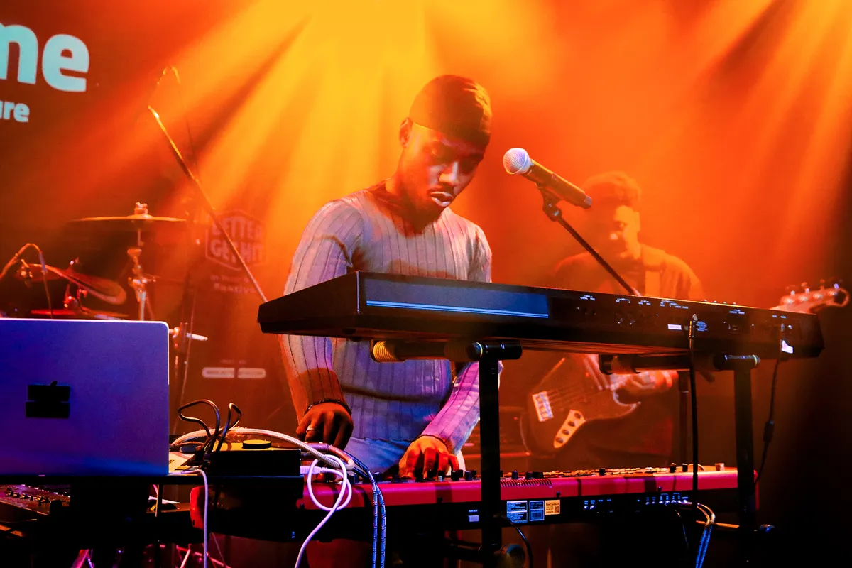Een sterkere en meer zelfverzekerde afsluiter had Better Get Hit zich niet kunnen wensen. Met zijn veelzijdige geluid betreedt BNNYHUNNA (alias Benjamin Ankomah) als laatste het podium van de concertzaal en zet daar een zwoel, jazzy optreden bomvol swingende synths neer met zijn meer dan vaardige band. Peter Somuah, voegt zich ook bij dit geheel, wat veelbelovend is voor degenen die hem net al hebben kunnen zien. Charismatisch als Benjamin is, vraagt hij ons wat naar voren te stappen en wat losser te komen voor het laatste uurtje. De genre-overstijgende muziek met invloeden van jazz, afrobeat, hiphop en zelfs wat verwijzingen naar reggae zet een sfeer neer die enthousiast maakt en ons met gemak laat vergeten dat onze voeten al behoorlijk vermoeid zijn. Met vlagen horen we wat zang en rap, de band achter hem - en dan met name de gitarist - speelt subliem, maar het is toch vooral Benjamin zelf die verscholen achter zijn imposante opstelling aan synths onze volledige aandacht heeft. BNNYHUNNA en zijn band barsten van talent en bewijzen dat de mensen die wat vroeger vertrokken zijn een waar hoogtepunt gemist hebben.