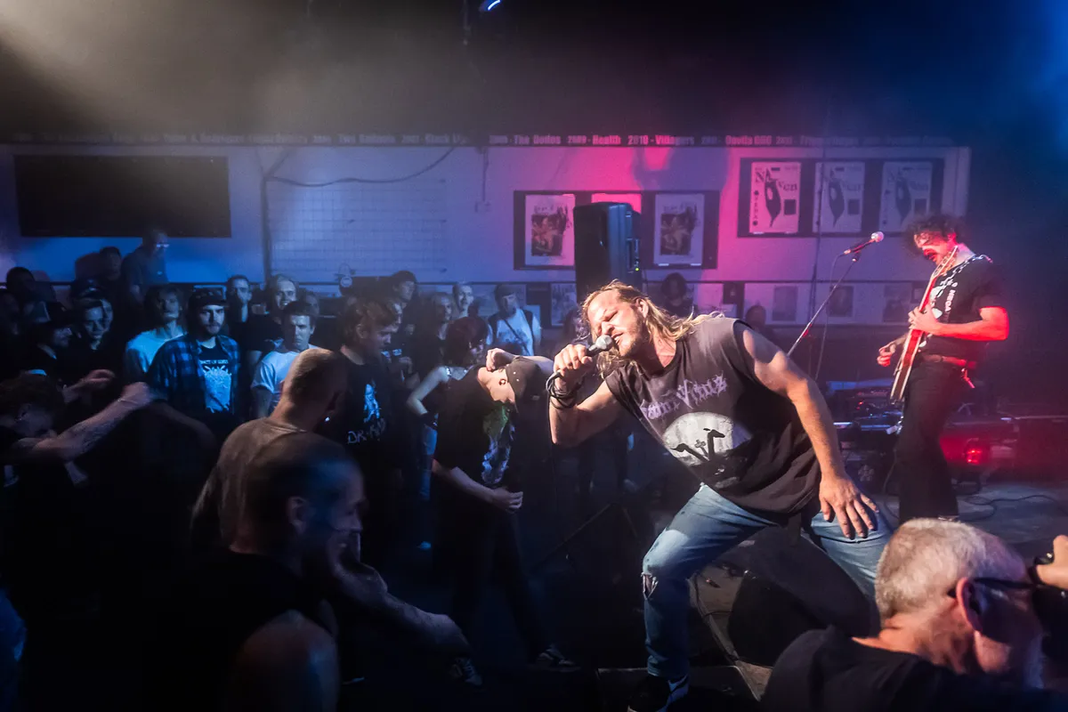 Tijdens de tempowisselingen maken we kennis met de nodige speedmetal-vibes. Tim bast alsof hij een opgefokte leadgitarist is, hij moet zich – lijkt wel – inhouden om niet mee de zaal in te duiken. Er is geen afstand tussen publiek en band. Er gebeurt overal wel wat, en het geluid en de oerkrachten zorgen voor een continue mosh en wilde bewegingen. Na amper twintig minuten is de set al klaar. Heel kort, maar Mediation staat wel als een huis. Het was geestdriftig. En in dit geval durven we wel hardop te zeggen dat een korte, intense sessie ook heel erg lekker kan zijn. Wat een aanwinst voor Groningen.