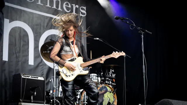MY BABY, de band die het bruggetje tussen rock en hypnotiserende dansmuziek heeft gevonden, had eigenlijk in 2020 al hier in park Transwijk op het podium moeten staan. Na een uitverkocht Paradiso en de release van hun nieuw album Sake Sake Sake staan ze er nu alsnog. Zangeres Cato van Dijck roept het publiek op te dansen voor hun vrijheid. Hoewel dit wat rustig op gang komt, maken knikkende hoofden en tikkende voeten al snel plaats voor swingende heupen en ledematen die alle kanten op gaan. Met een basdrum die, matched met die van het springende publiek, aanvoelt als een hartslag die steeds sneller omhoog gaat, komt de boel nu echt op gang. De psychedelische rock met lekkere gitaarriffs en stevige uithalen zorgt voor ontblote bovenlijven en voeten in het gras. Met hun cover van ‘Masters of War’ van Bob Dylan, laten ze de lyrics voor zich spreken. (IR)