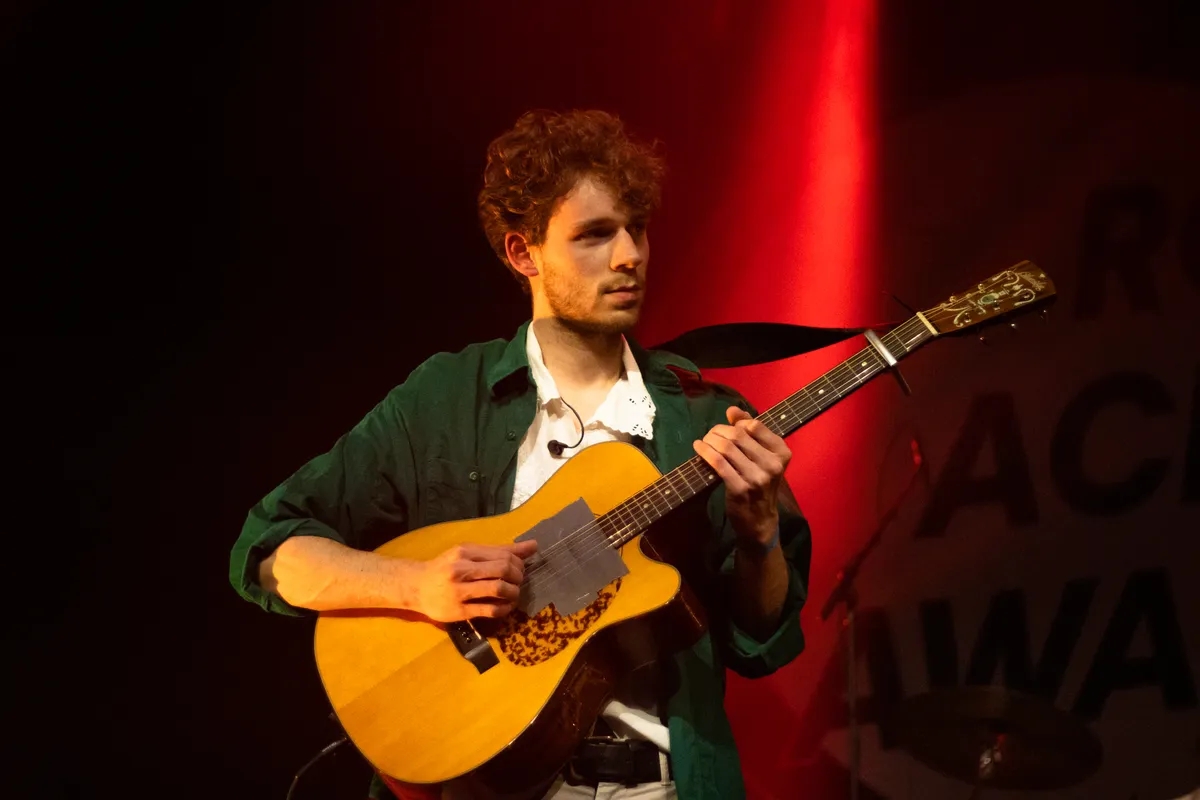 Tijdens de voorronden gaat het nog gespreid voor gitarist Rasmus Bisschop die het instrument hanteert voor Chai, Daisy Bellis en MarynCharlie. Rasmus is liefhebber en dat is te merken als hij op het podium staat. Nu drie keer aan de bak, maar dat doet hij met een haast ogenschijnlijk gemak. De gedachte van drie keer achter elkaar komt niet uit, omdat L’Asset als tweede band optreedt. Wel moet hij twee keer achter elkaar en dat gebeurt bij de wisseling van Daisy Bellis naar MarynCharlie Bij die ‘changeover’ van Daisy Bellis naar MarynCharlie moet hij even zijn jasje verwisselen, omdat hij het blauwe jasje moet aan doen bij MarynCharlie. Ook moet hij snel met zijn gedachten bij de arrangementen van MarynCharlie zitten. ,,Dat is even lastig geweest, maar voor de rest heb ik een prima avond”, vertelt de gitarist met een glimlach om de mond. Bovendien behoort hij toch tot één van de winnaars, want Chai komt als publiekswinnaar uit de bus.