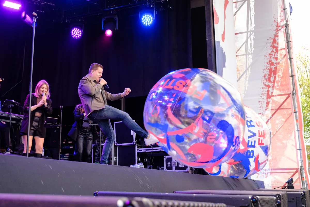 Gigantisch plastic ballen vliegen door de lucht wanneer Sven Versteeg, compleet met band en achtergrondzangeressen, zijn eerste bevrijdingsfestival aftrapt. “Jullie zijn de eerste en ook gelijk de beste!”, schreeuwt hij terwijl het bier door de lucht vliegt en het hossen begint. Onder leiding van Sven verandert Park Transwijk in een feesttent zonder dak. Zelfs zonder de ballen die door het publiek heen vliegen zouden ‘die handjes’ ook in de lucht gaan op het ritme van de muziek.