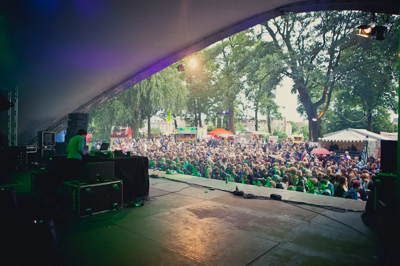 De producer Bibio speelt een gevarieerde set in de Saddlespan, maar weet het publiek niet mee te voeren naar hogere sferen. Tekst: Ilona Staal, foto's: Tom Roelofs.