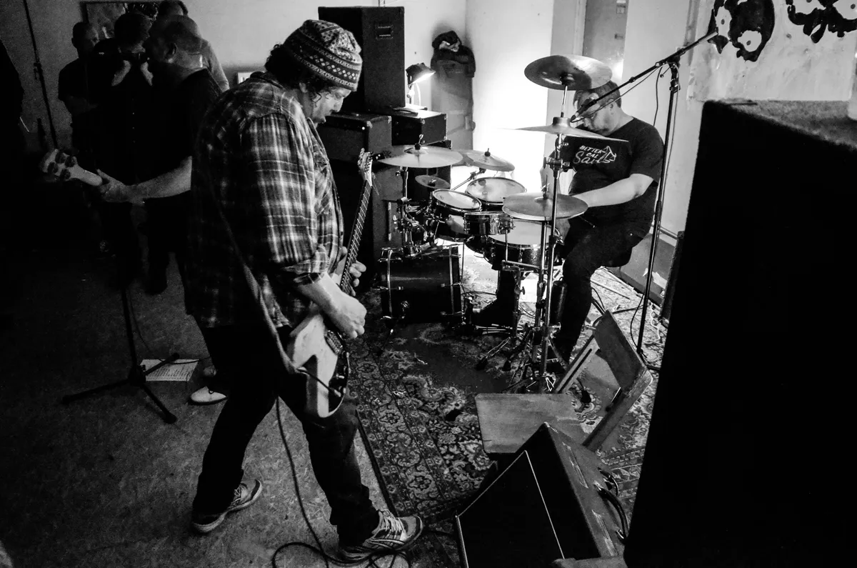 Daar is al vrij snel een soort vriendschap uit ontstaan. Toen we nadachten over waar we onze plaat wilden presenteren, was dat dus meteen de logische keus. Ze zeuren namelijk niet alleen over dat het allemaal kut is, maar ze doen er ook iets aan op een soort vrolijke alles-kan manier. Ze hebben een bepaalde vrijheid die ik bij ons ook herken.” Peter sluit zich hierbij aan: “Het zijn ook twee jongens die dingen organiseren om alles in de war te sturen in plaats van dezelfde reguliere en geïnstitutionaliseerde dingen. Je merkt bij Roel en Peter wel dat er net als bij ons altijd wel een wiel net uit de rails loopt. Ze hebben met z’n tweeën echt een soort vrijplaats gecreëerd.