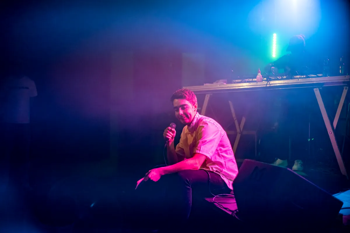 De enthousiaste 24-jarige Tom Röfekamp, die hier op het podium staat als rapper not sure, wordt opgewacht door een zo mogelijk nog enthousiastere fanschare. De indruk ontstaat dat je als nieuwsgierige Simplon UP-ganger per ongeluk op een huisfeestje bent beland, maar zodra not sure begint wordt alle twijfel al snel weggenomen. Het duurt niet lang voordat de hele zaal meegaat in de vrolijkheid van de jonge rapper.