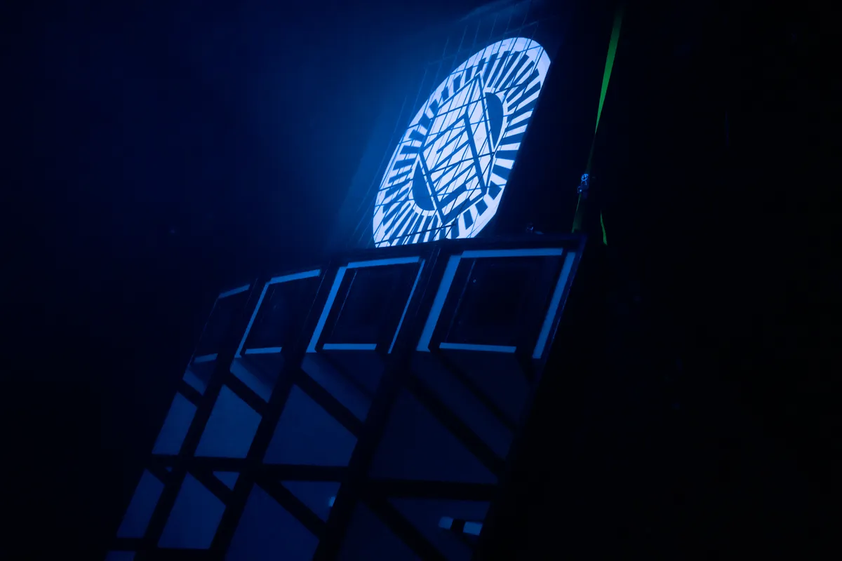 Bij binnenkomst in de grote zaal trekt meteen de dreunende muur speakers van het Zinloos Geluid-soundsystem de aandacht. Met hun zwart-witte speakers weet het collectief de muziek krachtig te vertalen naar diepe bassen en harde kicks. Opvallend is dat de dj links van de zaal staat opgesteld, achter een metalen frame, buiten het middelpunt van de ruimte. Daardoor ligt de aandacht niet op de booth, maar op het geluid dat de ruimte vult. En dat bleek precies de juiste keuze.