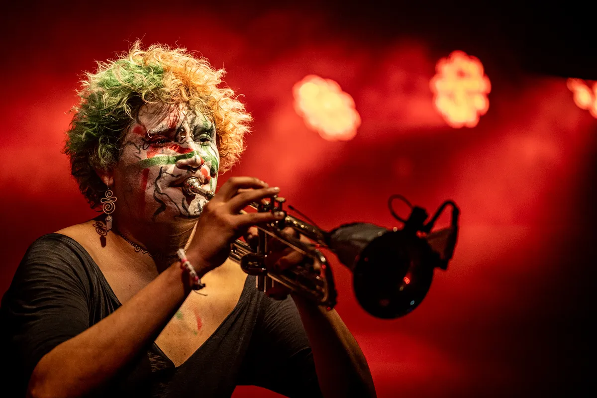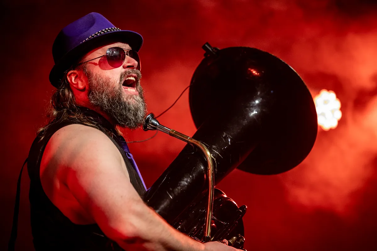 Afgelopen vrijdag moest de band het stellen zonder trombonist Chris Nobbs wegens ziekte. De resterende bezetting vulde elke hoek van de zaal met stuwende ritmes, pompende tuba en snerpende trompetlijnen. De energie was ontembaar. Wat Cockaphonix onderscheidt, is niet alleen hun unieke sound, maar ook hun duidelijke podiumdrang. Stilstaan is geen optie: bandleden verlieten geregeld het podium en zochten het publiek op, waardoor de vloer van De Piek langzaam mee begon te bewegen. De scheidslijn tussen podium en zaal vervaagde hier en daar. Het voelde minder als alleen een optreden en meer als een gedeeld moment tussen band en aanwezigen. Toch had deze avond meer publiek verdiend. Misschien schrokken sommigen terug voor vrijdag de dertiende — maar als er ooit een avond was waarop bijgeloof plaats moest maken voor muzikaal avontuur, dan was het deze. Wie er wél was, zag een band die speelt alsof elke show hun laatste kan zijn: intens, oprecht en met een aanstekelijke gekte.