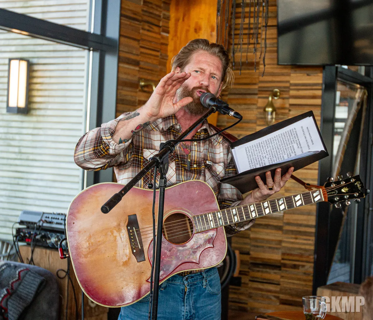 Dat voetbal nog altijd diep in z’n hart zit, blijkt wel als Björn van der Doelen aan komt op locatie. “Feyenoord staat met 3-0 voor”, zegt hij met een glimlach. Om daarna direct door te gaan met waar hij vanmiddag voor gekomen is. Muziek maken. Voetbal en muziek gaan hand in hand bij de sympathieke Brabander. Hij neemt het publiek vanaf de eerste moment direct mee zijn leven in. Eerst naar zijn verleden. Met het verterende ‘Moederke’. Een lied over, natuurlijk zijn moeder. Die hij tot op de dag van vandaag nog wekelijks meeneemt op een wandeling. Ook ‘Bende Mal’ verhaalt over het thuis bij z’n ouders. De verteller in hem komt naar boven in z’n ‘ode aan de jaren tachtig’ die hij ooit voor Omroep Brabant mocht maken. Er wordt herkenbaar geknikt tijdens zijn verhaal en het daarop volgende ‘Gezellig op vakantie’.