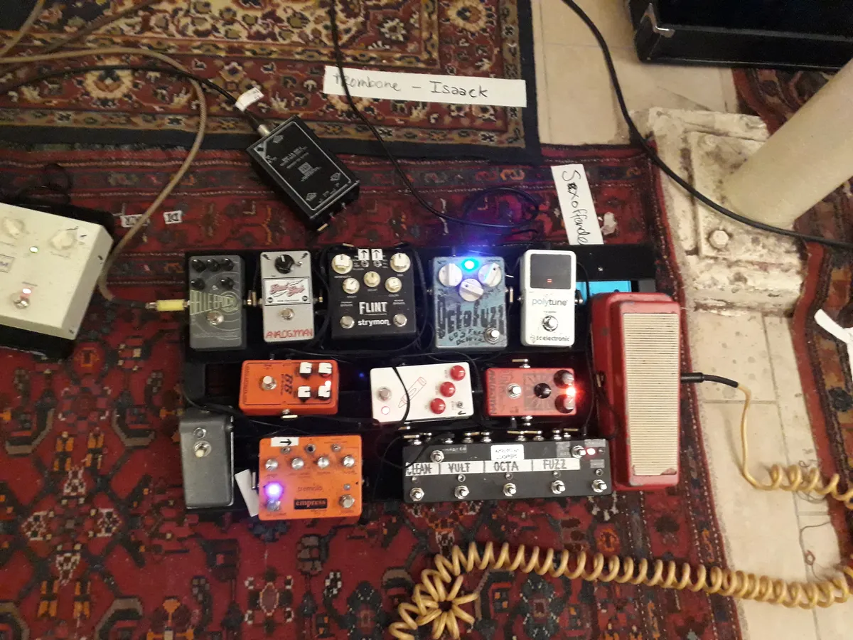 Stap 2 is het vergelijken van de diverse versterkers en de toelichting op de keuze van het wattage. De kunst is de versterker te 'oversturen' zonder de trommelvliezen eruit te blazen. Beide pedalboards en de kasten van de studio, gevuld met pedalen, worden open getrokken en het vergelijken van diverse sounds is begonnen. Omringd door tientallen pedalen volgt een heerlijke middag.