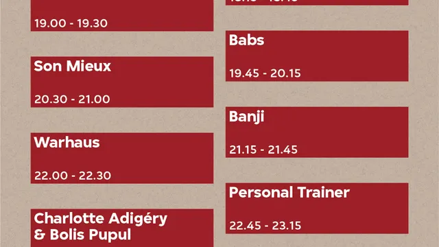 Puzzelen geblazen, want het blokkenschema voor het Song van het Jaar-festival aanstaande vrijdag 2 december in de Maassilo Rotterdam is nu bekend. We beginnen om 18.15 met een speciale intieme set van The Haunted Youth, en eindigen met Charlotte Adigéry & Bolis Pupul in de grote zaal en daarna Prins S. en de Geit in de kleine zaal. Tickets kun je scoren via Rotown!