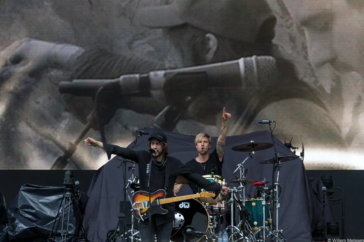 Met recht een mega-act dus. We beginnen vandaag echter met Navarone, een band die met hun deelname aan The Voice of Holland nadrukkelijk de stap naar het nationale podium maakte. En succesvol, blijkt uit het publiek dat bij aanvang al in ruime mate aanwezig is. Speelde Metallica eerder deze week nog ‘Bloed, Zweet en Tranen’ tijdens hun show, voor Navarone was ‘Jij Krijgt Die Lach Niet Van Mijn Gezicht’ een optie geweest want wat straalt de band tijdens hun optreden in het Goffertpark. Een jongensdroom, zo vertelt zanger Merijn van Haren tijdens Navarone’s set, om als Nijmeegse band in hun thuisstad op de Goffertweide te mogen spelen. En dan ook nog als support-act voor een band die hij als jochie in 1995 in ditzelfde park live zag. De anekdotes tekenen de ontwapenende houding van een band.