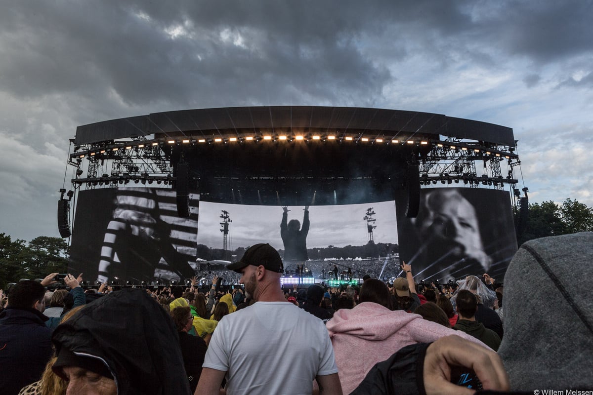 Na indrukwekkende beelden van bekende Nijmeegse attracties op de minstens net zo indrukwekkende schermen (volgens de band is dit het grootste podium waar ze ooit mee getourd hebben) is het nummer ‘This House Is Not For Sale’ het startschot voor Bon Jovi. Zanger Jon Bon Jovi heeft er duidelijk zin in en ook het volle Goffertpark is enthousiast: zelfs dit nieuwe nummer wordt luidkeels meegezongen. Tijdens ‘Raise Your Hands’ en ‘You Give Love A Bad Name’ zien we hetzelfde beeld, al komt die laatste misschien te vroeg in de set. De frontman heeft namelijk wat tijd nodig om op te warmen, en nog niet optimaal beginnen aan een van je grotere nummers is natuurlijk zonde.