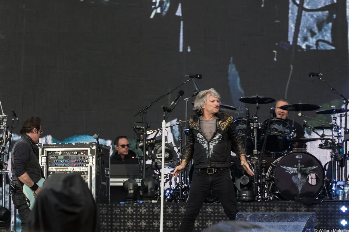 De toegift bestaat uit slechts twee nummers, maar een betere toegift is vanavond haast niet denkbaar. Allereerst is daar geheel onverwachts ‘Always’, de mega-hit die al meer dan 1,5 jaar niet live is gespeeld. Combineer dat met een miezerbui die langzaam aanzet en – daar zijn ze weer – een extatisch publiek die alles woord voor woord meebrult en je kunt alleen maar concluderen dat dit, ondanks een ietwat moeizame start, een geweldig optreden is geworden. Daarna wordt de show afgesloten met ‘Livin’ On A Prayer’, het nummer dat drie kwartier na de show op straat nog steeds gezongen zal worden.