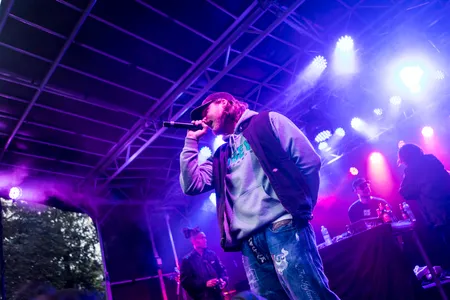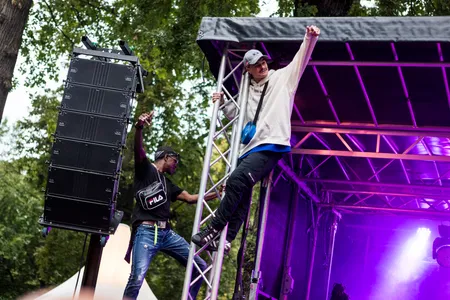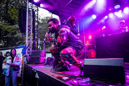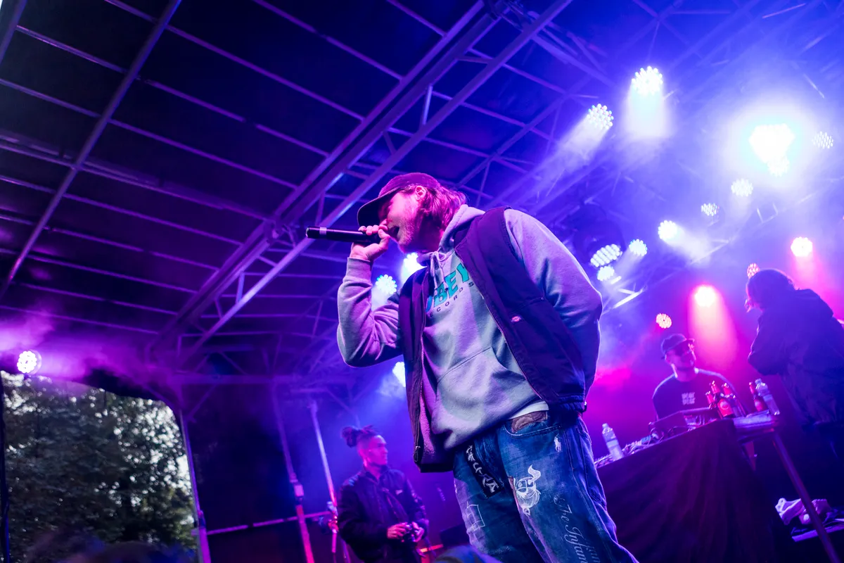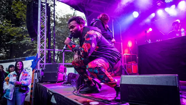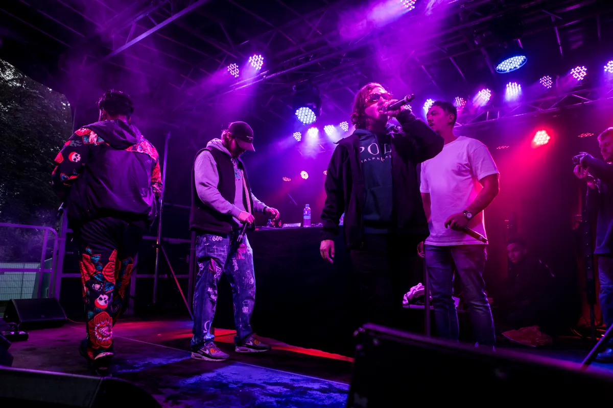 Terwijl een verwarde man met € 10 briefjes staat te zwaaien naar de rappers, houden zij zich bezig met het zingen van 'Baliëndijk', waarop men niks anders kan dan bouncen. De groep had onlangs al aangekondigd dat er nieuwe muziek aankwam en liet de mensen er vandaag een beetje (letterlijk) van proeven. “Wij hebben water voor de dorst” was een zin uit het nummer en wordt er vanaf het podium water gegooid in het publiek, alsof het nog niet genoeg regent vandaag.