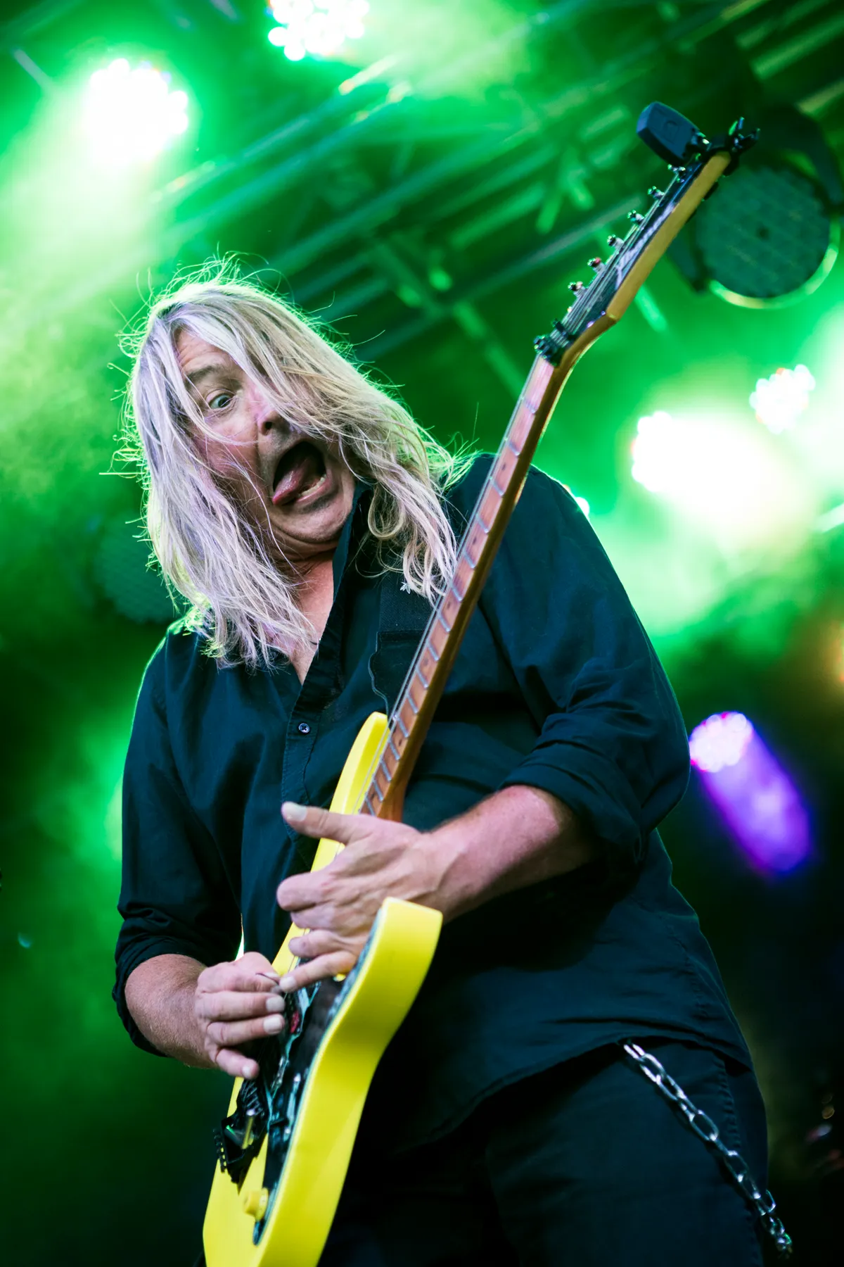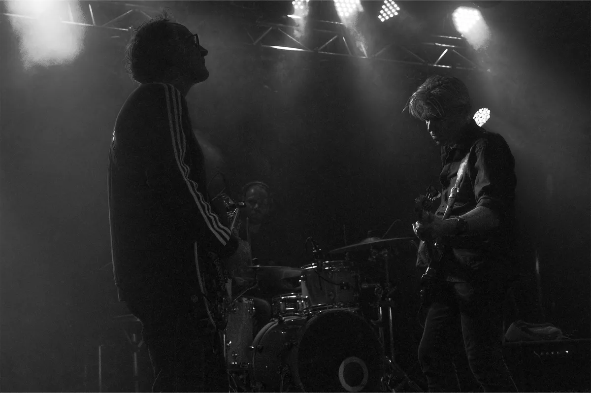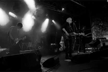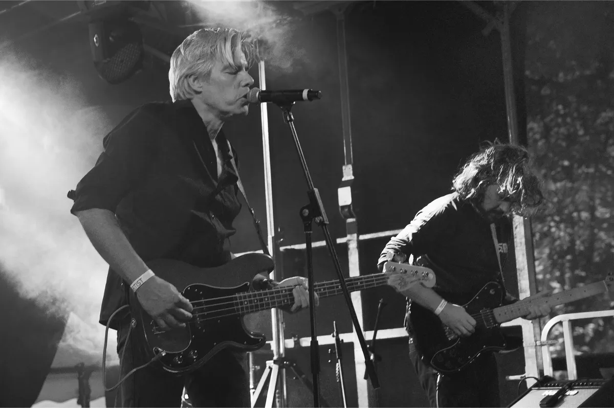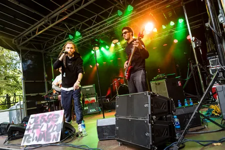 "Bedankt dat jullie blijven staan tijdens dit rotweer," Tijdens de laatste nummers van De Likt is het stevig beginnen te regenen. Eigenlijk voor het eerst vandaag zo hard. En toch staat er veel volk klaar voor Dead Duck. Zanger en bassist Leon Weterings vervolgt: "We maken vrij donkere muziek, maar zijn eigenlijk heel vrolijke jongens." We hebben Dead Duck de afgelopen jaren een paar kleine transformaties zien maken, nu met Rick Ruskus op gitaar lijkt de definitieve vorm gevonden. De vier uit Breda maken alternatieve indie rock, neigend naar post-rock. Met duistere kantjes en vol boeiende herhaling. Leon schreeuwt geregeld zijn longen uit zijn lijf om zijn teksten te laten klinken zoals hij bedoelt. Over een paar weken komt een nieuw album uit. Een serieuze band die het goed doet in het duister, niks voor op een vroege middag. Daar zijn ze ook veel te goed voor. (DH)