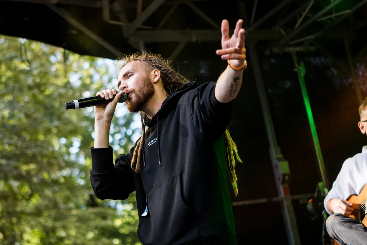 Sunshine en positivity. Voor het eerst staat Jesse Joey James met zijn band The Flying Dutchmen op Future stage. Jesse laat het publiek, jong en oud, swingen. Met aanstekelijke vibe maakt hij een goede sfeer. Met de zon als spotlight rolt Jesse ondanks de opstartproblemen lekker en soepel door. Het is een reünie van vrienden en kennissen voor het podium, terwijl ondertussen levensthema’s zoals verliefd worden en doodgaan door Jesse op melodieuze wijze verteld worden. Een van zijn vrienden, Sven, die helaas niet meer onder ons is, geeft Jesse credits: hij heeft deze wordsmith, ook wel bekend onder de naam Jesse van der Meulen, zoveel positiviteit gegeven. Deze drilt dan ook door in zijn nummers, ook al gaat het soms over helemaal niet zulke leuke dingen. De classic sit-down ontbreekt niet en iedereen doet lekker mee. Een act die lekker op Future stage gaat, maar mocht je echt interesse hebben in de lyrics van Jesse Joey James, luister dan op je gemak nog eens naar zijn nummers. (KV)
