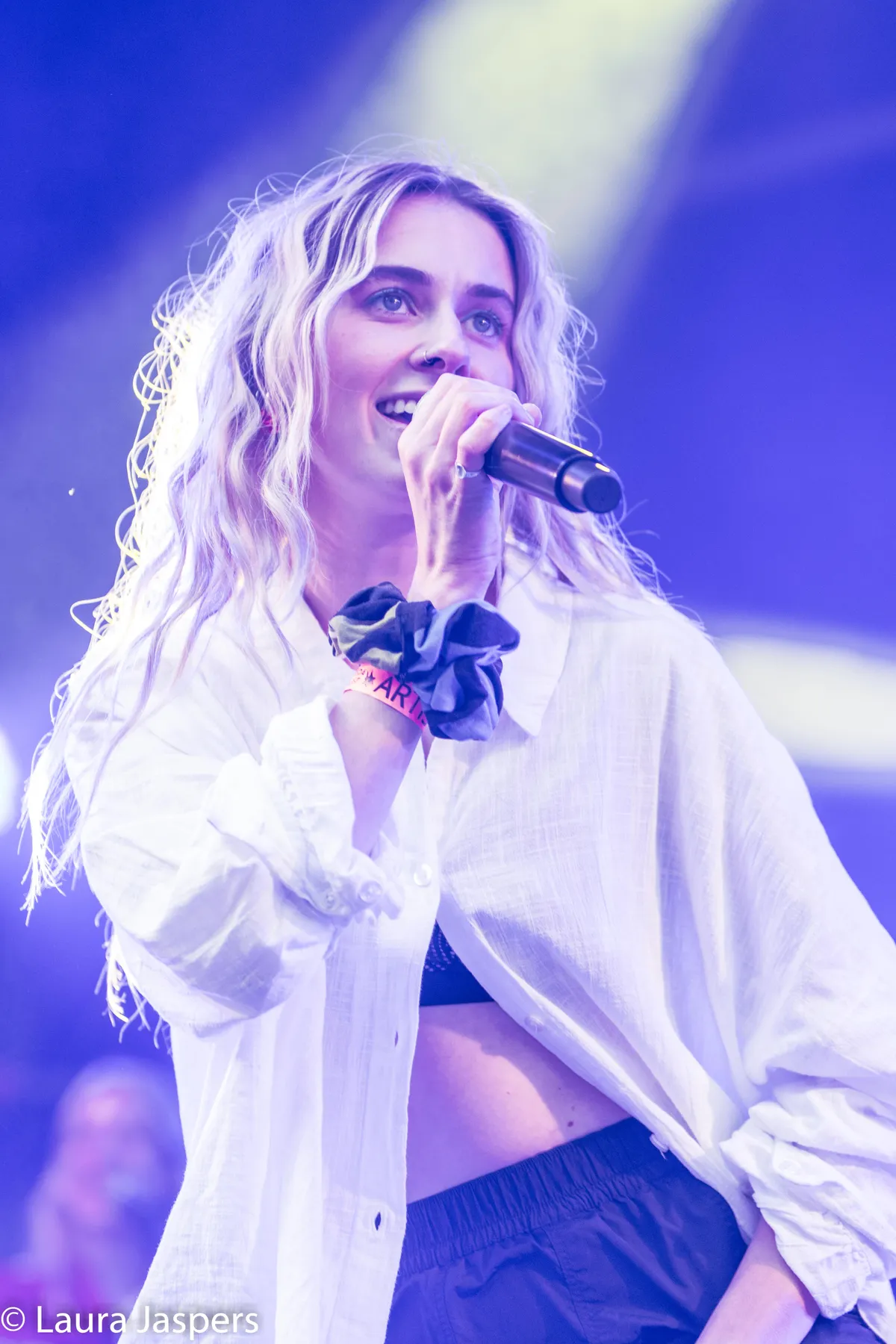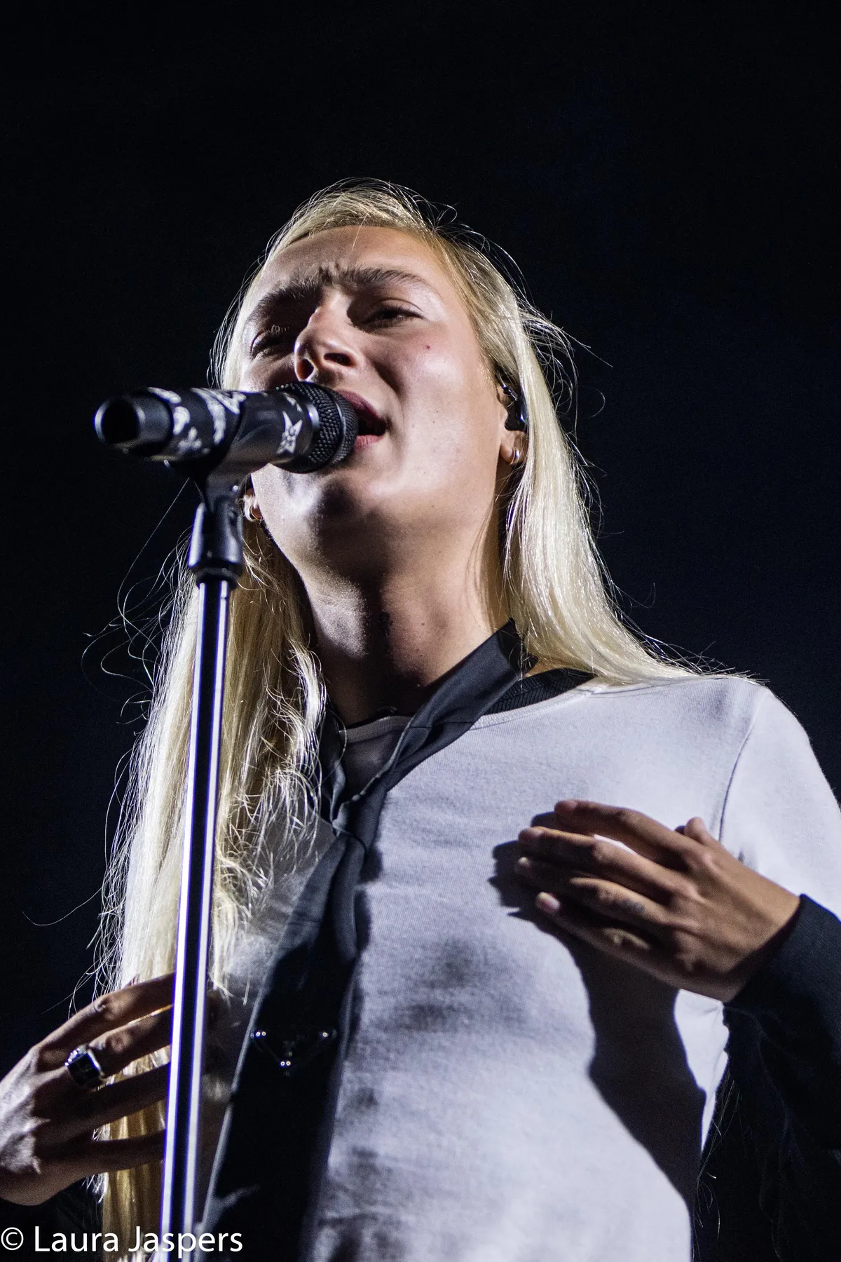 Na een lang en goed opbouwend intro komt Áslaug het podium op. Ze spot meteen een klein jongetje helemaal vooraan die enthousiast meeklapt en een lach op het gezicht tovert van haar en de band. Bij de Main Stage is veel ruimte, maar tóch blijft het publiek een beetje op de achtergrond. Deze ruimte merkt de zangeres ook. Dit is haar eerste show ooit in Breda en ze geniet van de ruimte die ze op hier heeft. “Waarom heeft niemand mij verteld dat je zo moe wordt op zo’n groot podium?” zegt Áslaug buiten adem.