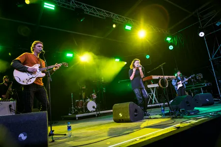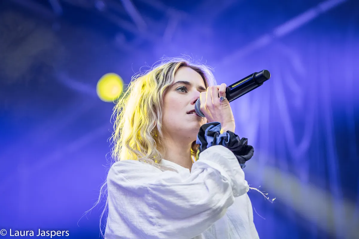 LUCAS is de opener van Main Stage vandaag. Het is de artiestennaam van Lucas Vermeer, oud-Bredanaar en oud-leerling van het OLV. Tegenwoordig woont hij in Rotterdam waar hij met een 10 afstudeerde aan Codarts en inmiddels al drie EP's heeft gemaakt. Zijn bandleden zien er ook uit alsof ze op Codarts of het conservatorium hoge cijfers hebben gehaald: jong en ze spelen heel goed en strak. Hun vierstemmige samenzang geeft het optreden echt een extra dimensie. Door de drie blazers krijg je af en toe een big band-gevoel. Het is eerst even wennen aan de Nederlandse poëtische teksten, maar al snel ben je eraan gewend. Mooie vindingen als "Ik wil je blijven ruiken" of het 'piemellied' 'Poppenhoek: "Ik ben blij dat ik een piemel heb, Ik haat alleen de vele regels bij mijn lijf." LUCAS maakt dan op zijn derde EP 'Bipolair' misschien liedjes die spelen met heteronormativiteit, tijdens het optreden legt hij het er niet te dik of prekerig bovenop. LUCAS maakt met zijn band een vrolijke, swingende show die zelfs even het zonnetje naar Main Stage lokt. Daar waar een dankbaar publiek meeklapt met 'Verdwaald', een nummer over later, over "verdwaald zijn op de lange termijn." (DH)